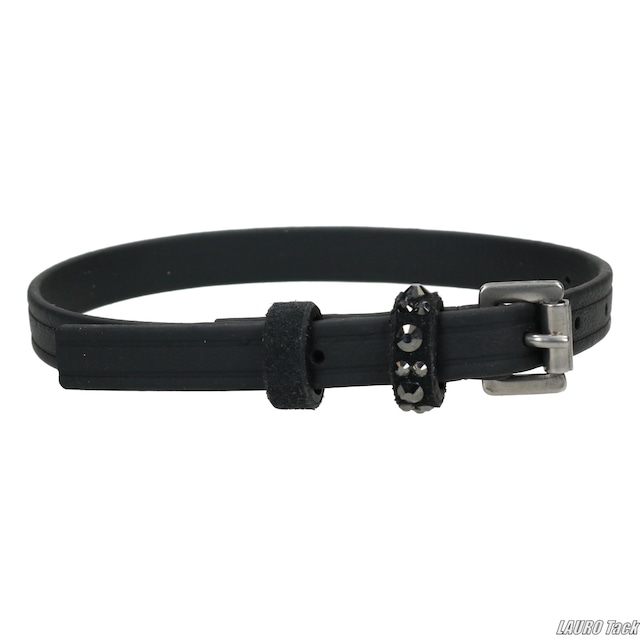 バイオタン(合成素材)を使用した拍車革です。水や汚れに強く実用性に優れながら、クリスタル装飾によって足元を上品に演出します。ブラックを基調とした落ち着いたデザインで、左右1組での販売です。 [0]