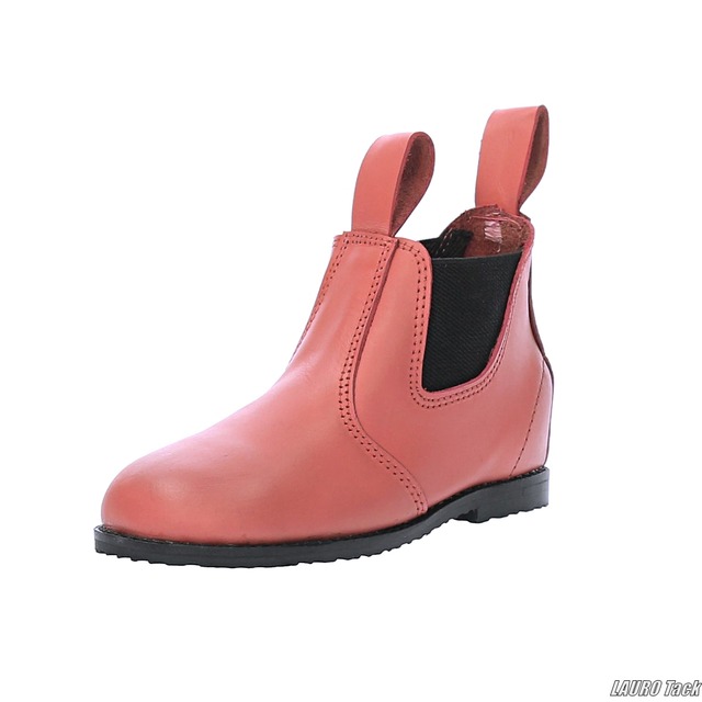 子ども用のレザージョッパーブーツ。内側には通気性に優れた裏地を採用し、柔らかく快適な履き心地を実現。かかと部分の2つのループで脱ぎ履きが簡単にでき、小さな手でも扱いやすい仕様です。明るいピンクカラーが可愛らしく、ポニーライダーにぴったりのデザインです。 [0]