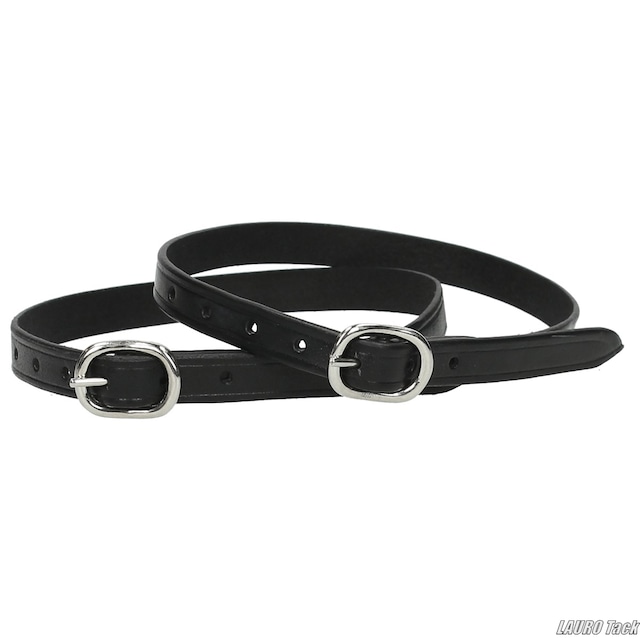 ベーシックで使いやすいレザー拍車革です。柔らかくしなやかなレザーを使用し、シルバーカラーのバックルを採用しています。さまざまな拍車に合わせやすく、左右1組での販売です。 [0]
