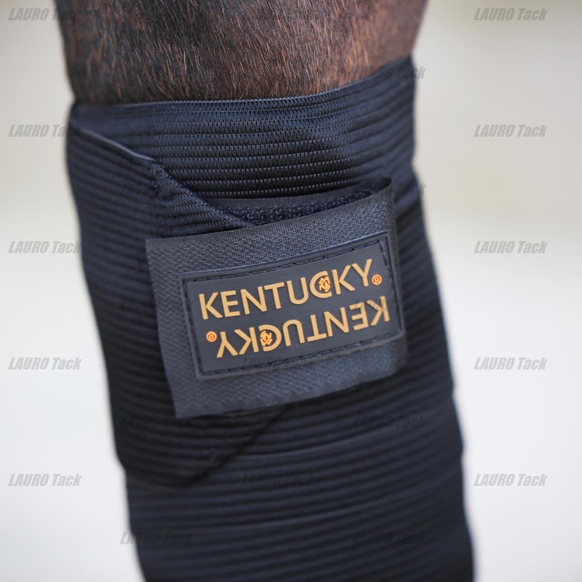 ブラックのKentucky肢巻きは、ポーラーフリースと伸縮性素材を組み合わせた設計で、脚に自然にフィットしながらしっかりとしたサポートを提供します。お手入れしやすく、使いやすい4本セット。