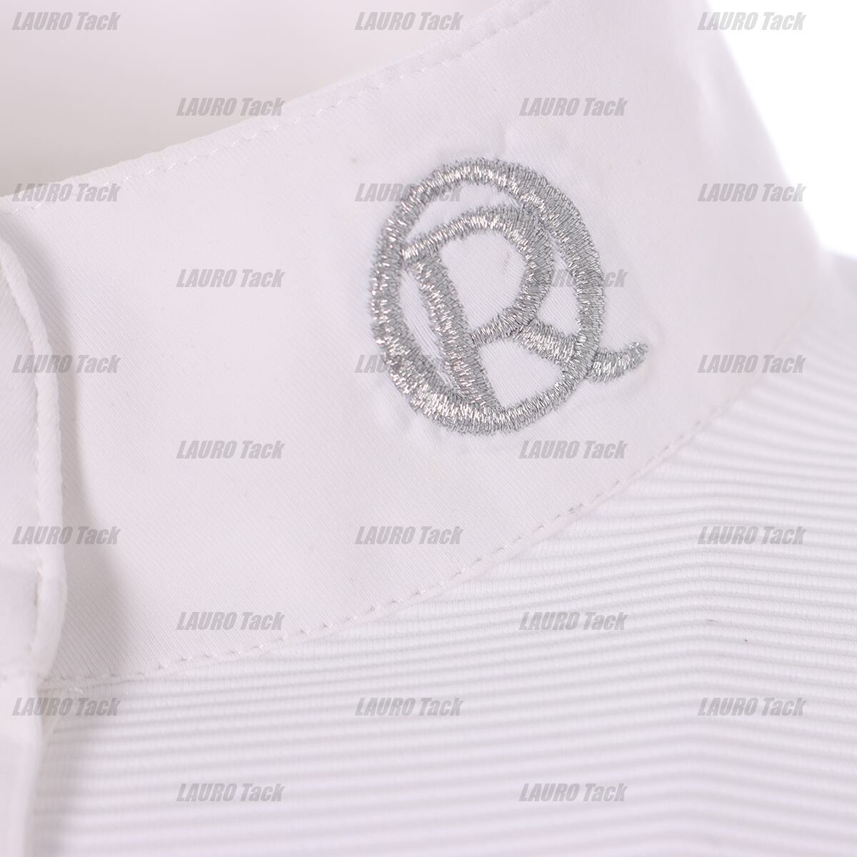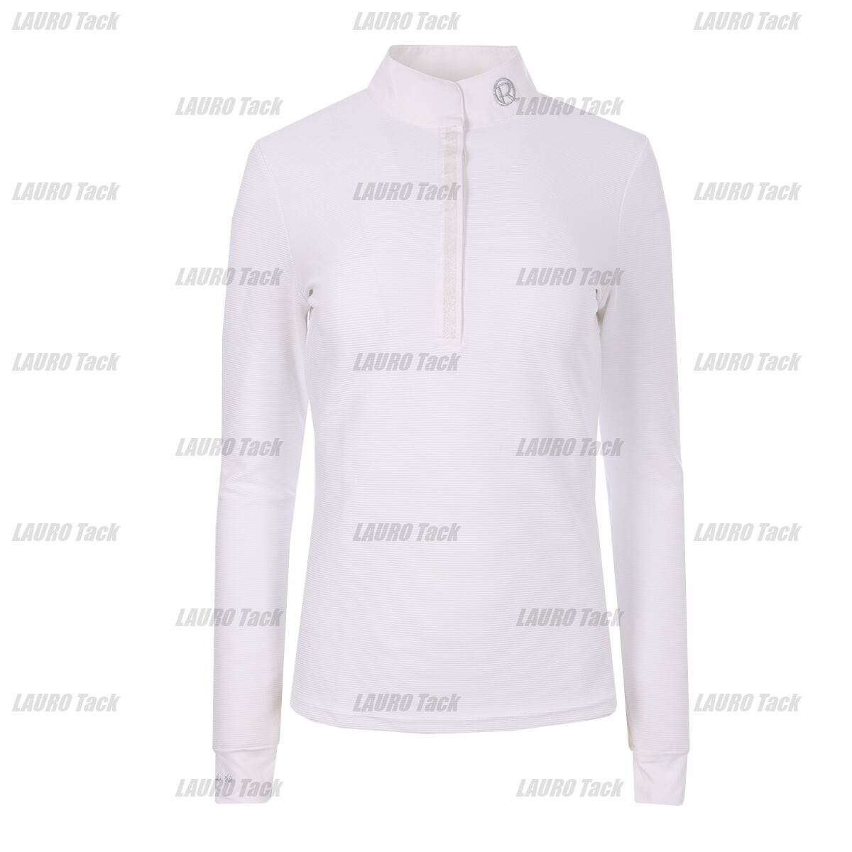 上質なストレッチ素材で動きやすく、通気性にも優れたレディースショーシャツ。ホワイトのすっきりとしたデザインで競技会でも美しく決まります。