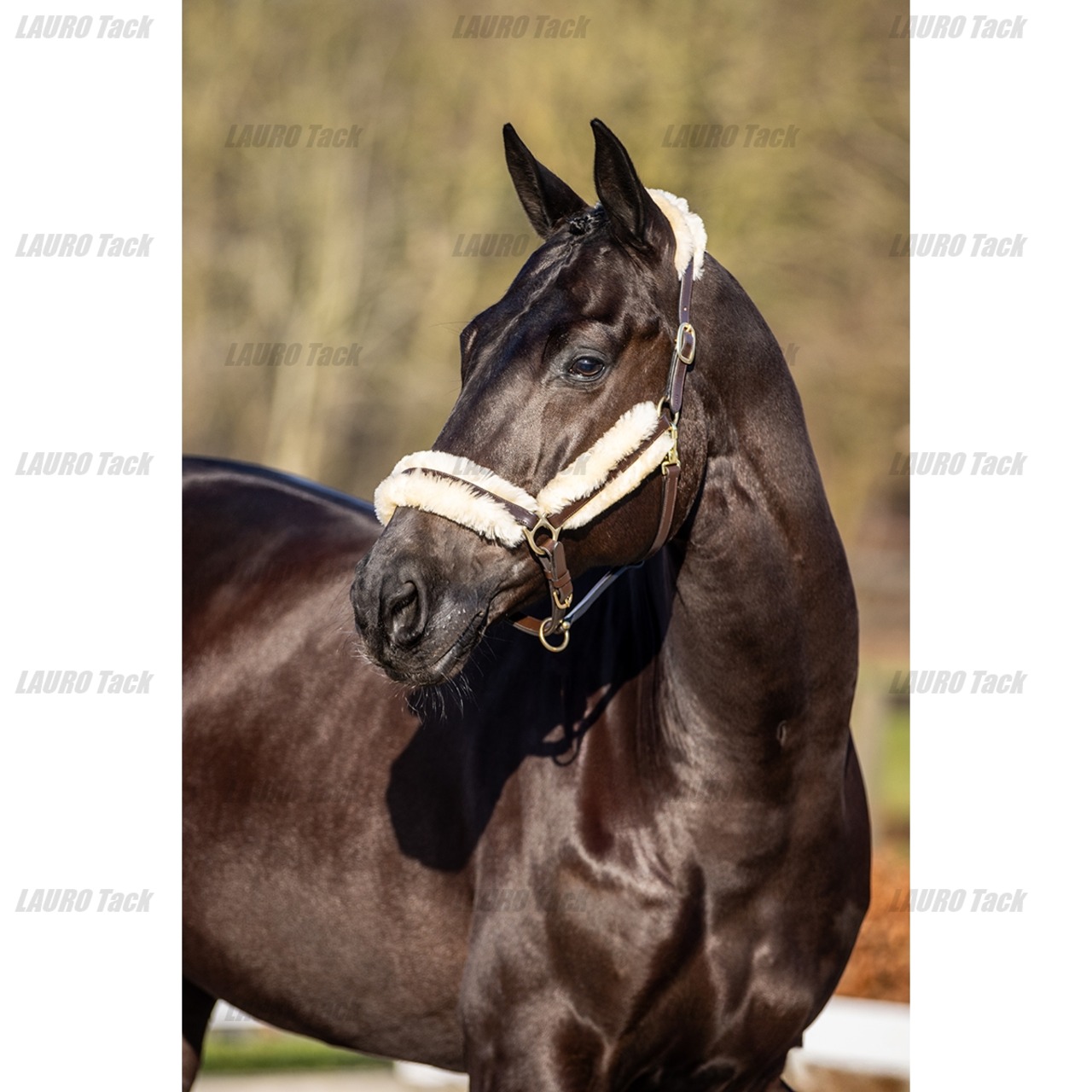SKOLのSKLuddモデル無口(馬用ハルター)。高品質レザーで作られた贅沢な仕上がり。柔らかい裏地が顔あたりをやさしくし、長時間の装着でも快適です。調整可能なベルトとしっかりした金具で耐久性も抜群。ブラウンは温かみがあり、落ち着いた印象を与えます。