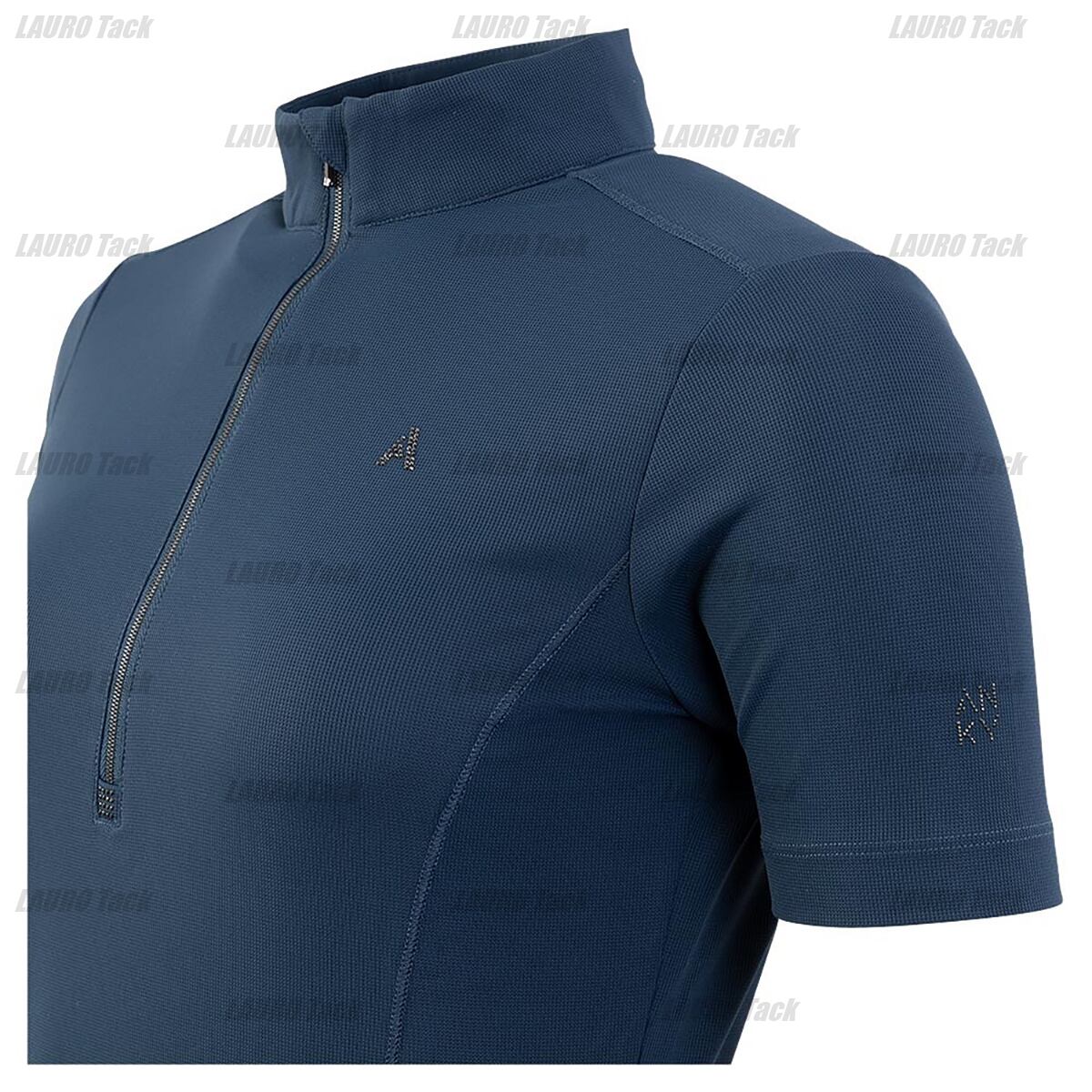 通気性と吸湿速乾性に優れた機能素材を使用したレディース用トレーニングシャツ。4方向ストレッチで動きやすく、ライディング中の体の動きに柔軟に対応。首元は顎保護付きのジッパー式スタンドカラーで、開閉によって温度調節も可能。胸元にはラインストーンのANKYロゴが輝きます。