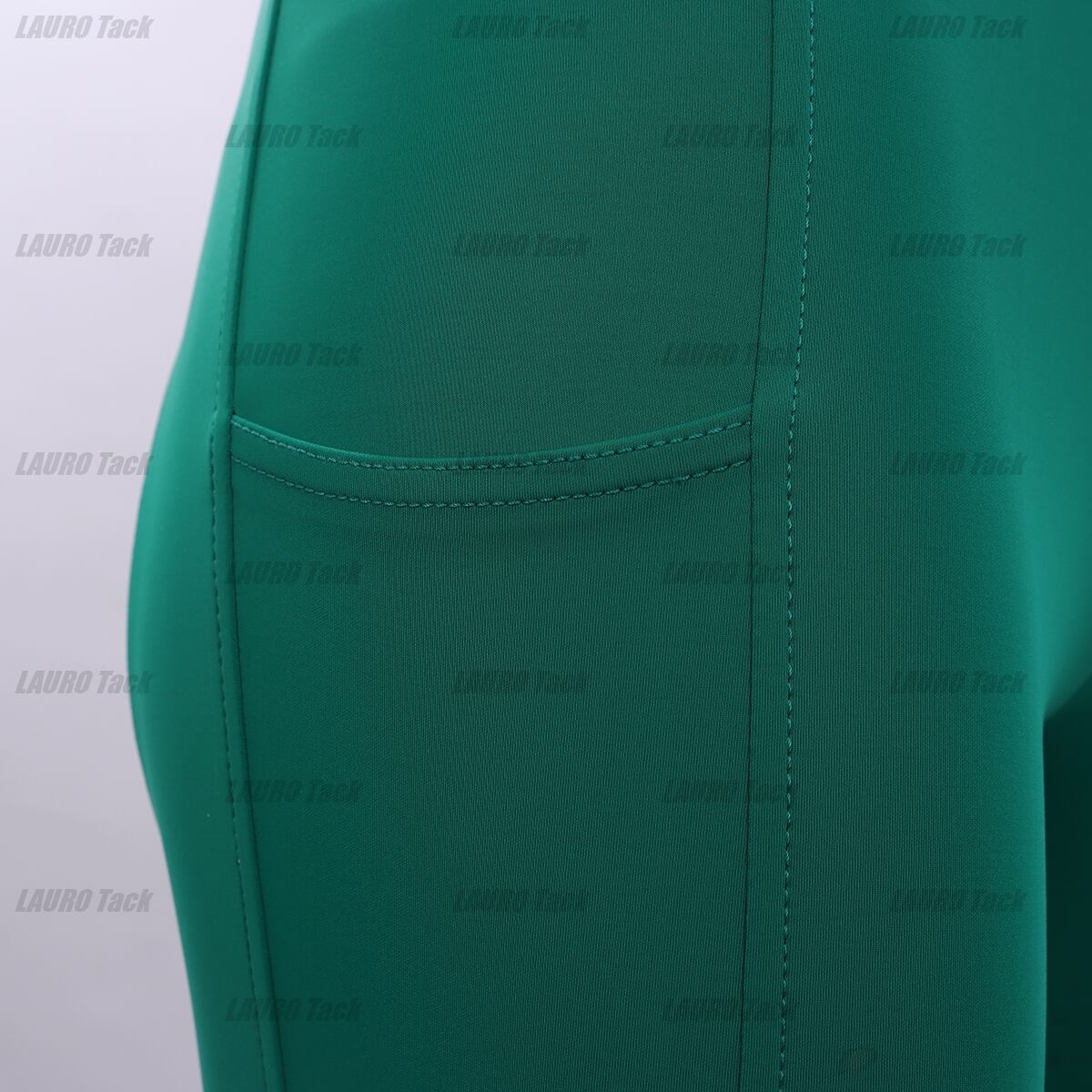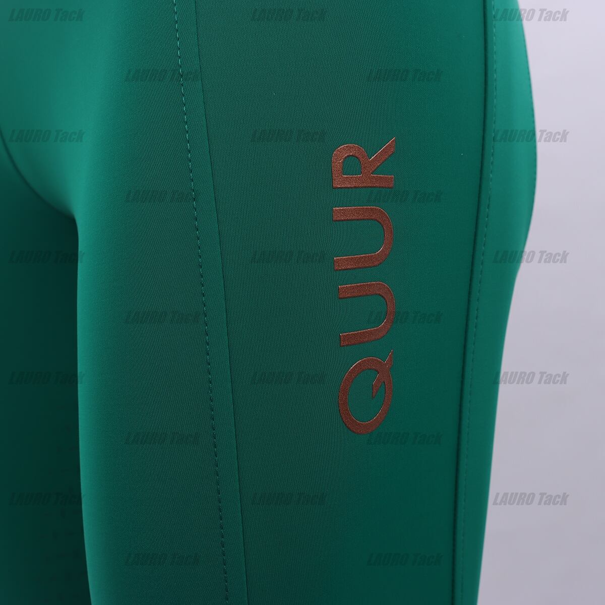 グリーンカラーの「Qgenc 2.0」ライディングタイツ。フルグリップで滑りを防ぎ、柔軟性のある生地が快適なライディングをサポートします。
