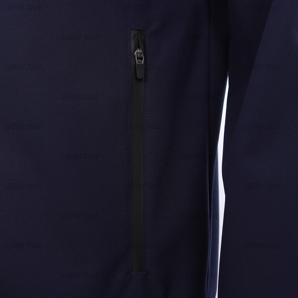 QUUR製QClassicコレクションの男性用ソフトシェルジャケット。快適な着心地と4方向に伸縮する生地を採用。柔らかなフリース裏地で暖かく、柔らかい襟とあごガード付き2WAYファスナーが首元を快適に保ちます。スナップボタン付きサイドポケット2つ、袖口と裾は伸縮性のあるリブ生地。ダークブルーが落ち着いた印象を与えます。