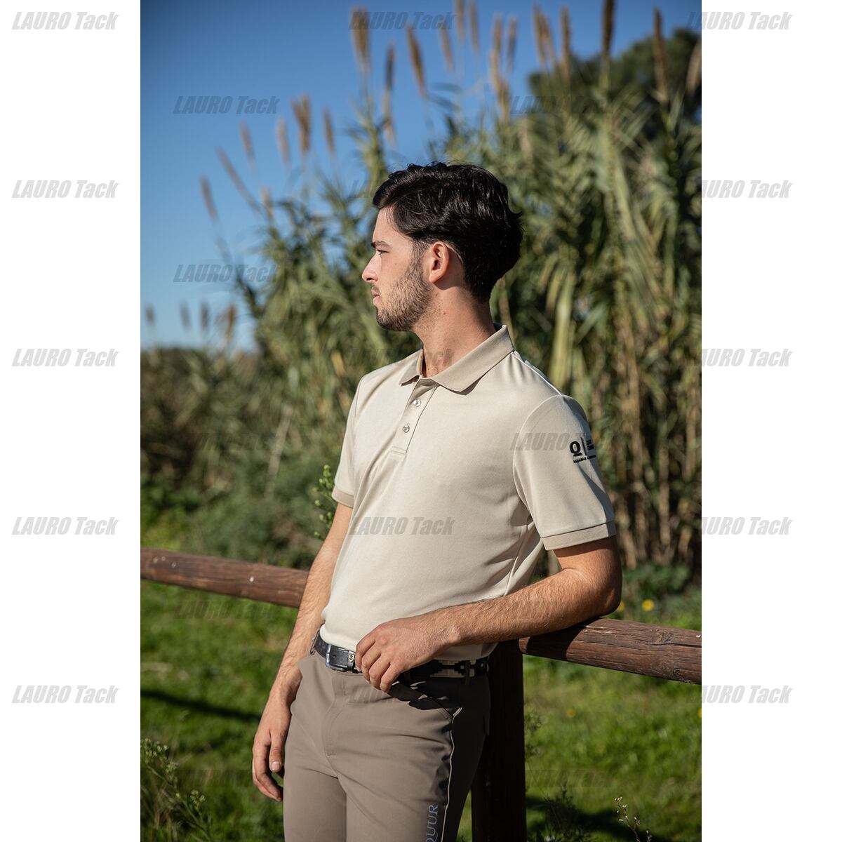 柔らかく快適な着心地の男性用ポロシャツ。高い通気性と動きやすさを備え、ボタン付きの上品な襟と伸縮性のある袖口が特徴。左肩にQUURロゴ入り。素材はポリエステル100%。