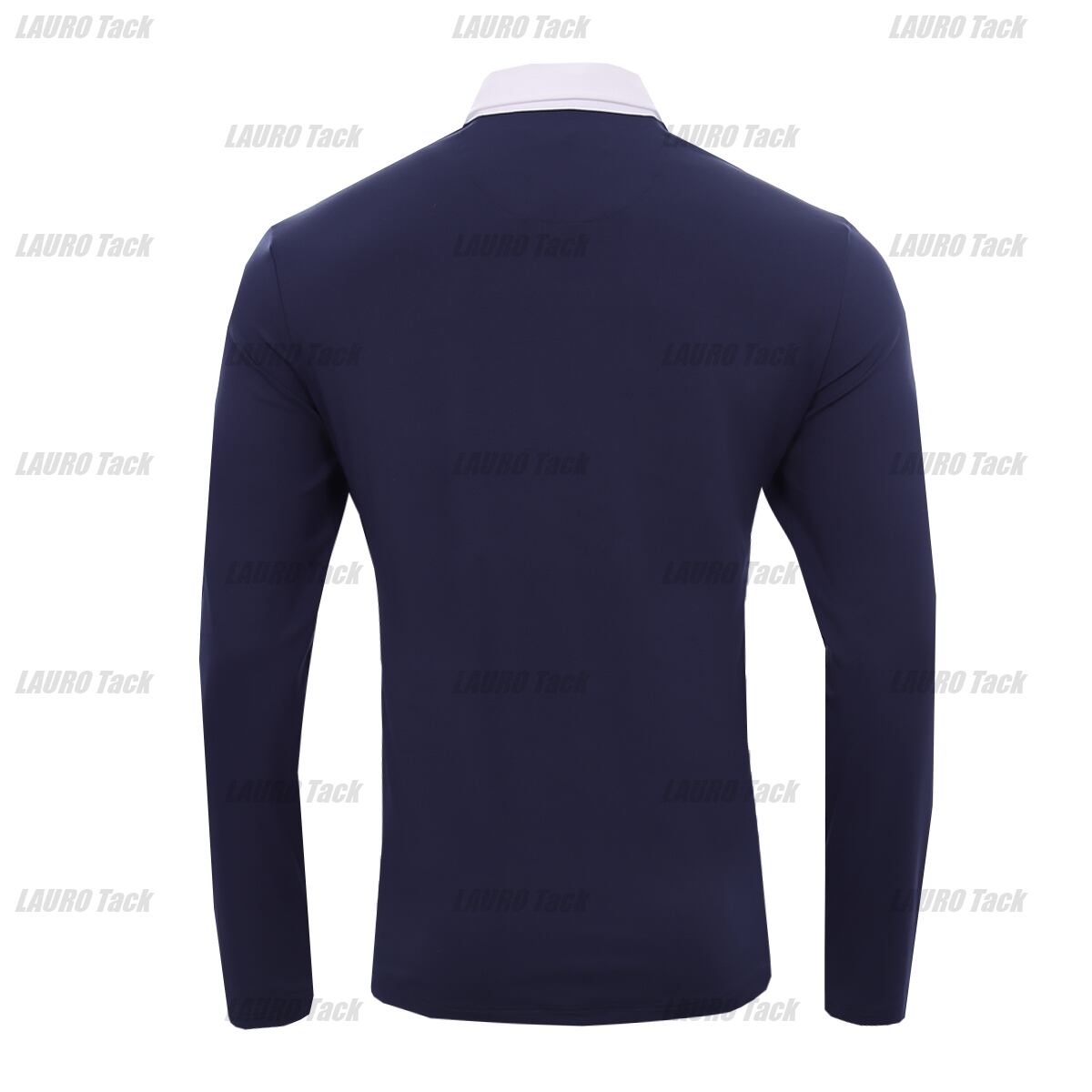 4方向に伸縮する生地を使用した長袖の男性用ショーシャツ。優れた動きやすさと快適性を持ち、クラシックなボタン付き襟とストックタイを固定できるループ付き。素材はポリエステル83%、エラスタン(伸縮性のある合成繊維)17%。