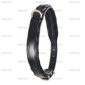 耐久性に優れたレザー製の犬用首輪。シンプルで高級感のあるブラックカラーで、日常使いにも特別なお出かけにも適しています。