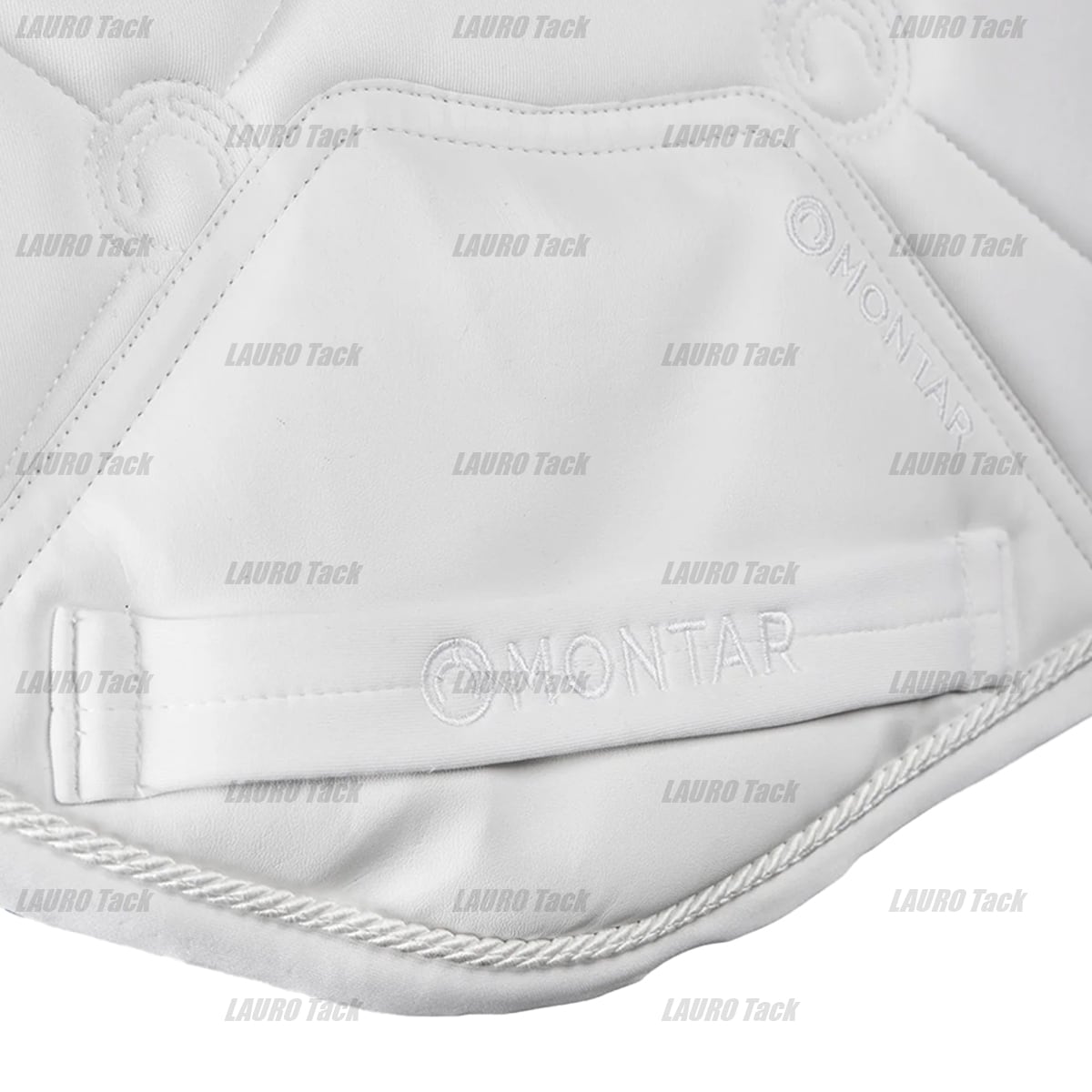 Montarの障害用ゼッケンは、軽量で優れたクッション性を持ち、馬体と鞍の間で衝撃をしっかり吸収します。通気性の高い生地を使用し、運動中の熱や湿気がこもらないよう工夫されています。ホワイトの清潔感あるカラーは、さまざまな馬装と合わせやすく、競技だけでなく日常の練習や外乗にも最適です。耐久性も高く、洗濯機で手軽に洗える点も魅力です。