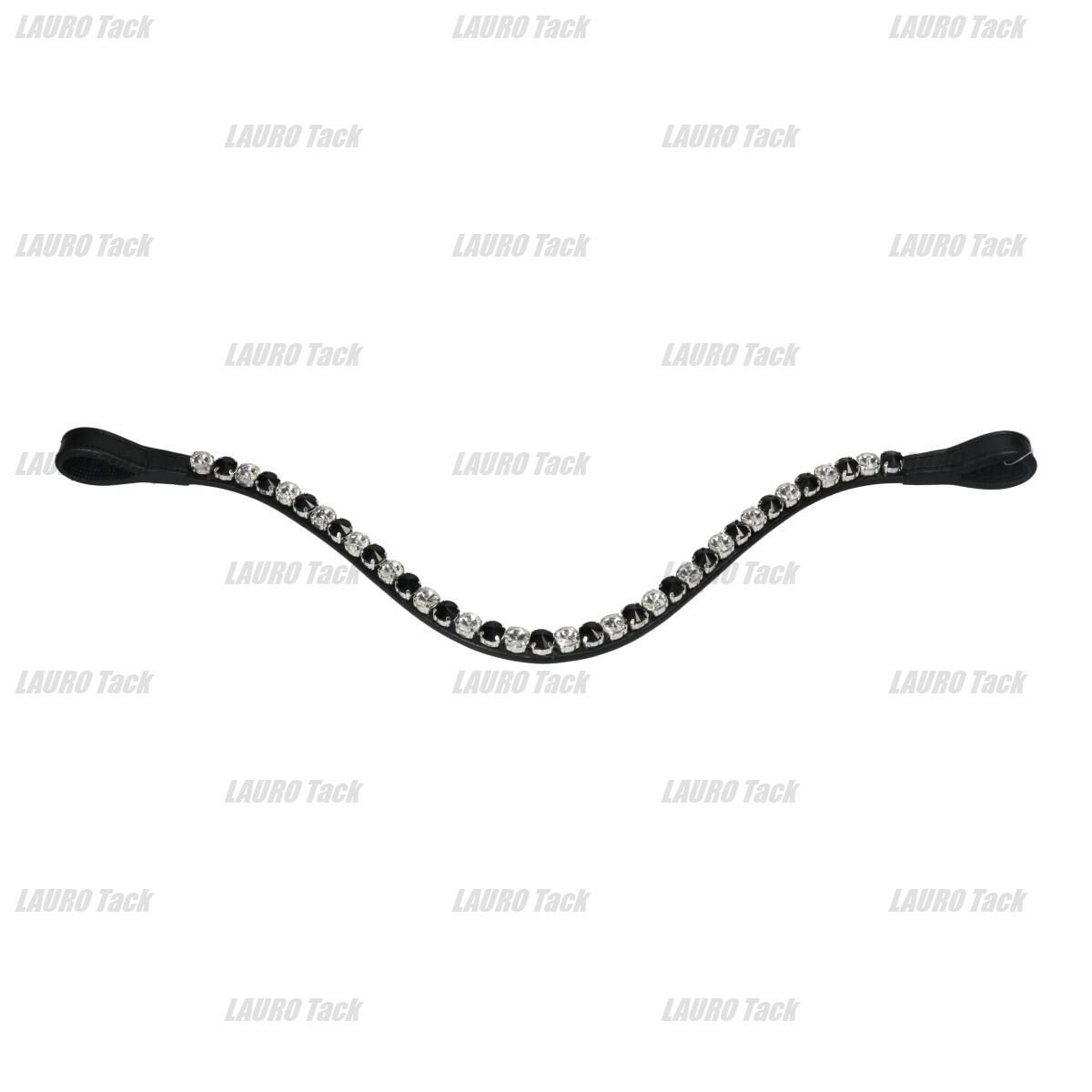 シックなブラックレザーにシルバーの輝きを組み合わせた上品なデザイン。光を受けて上質にきらめき、馬の顔を美しく引き立てます。モダンかつクラシカルな雰囲気を持ち、どんな馬具にも合わせやすいのが魅力。競技会で洗練された印象を与える額革です。