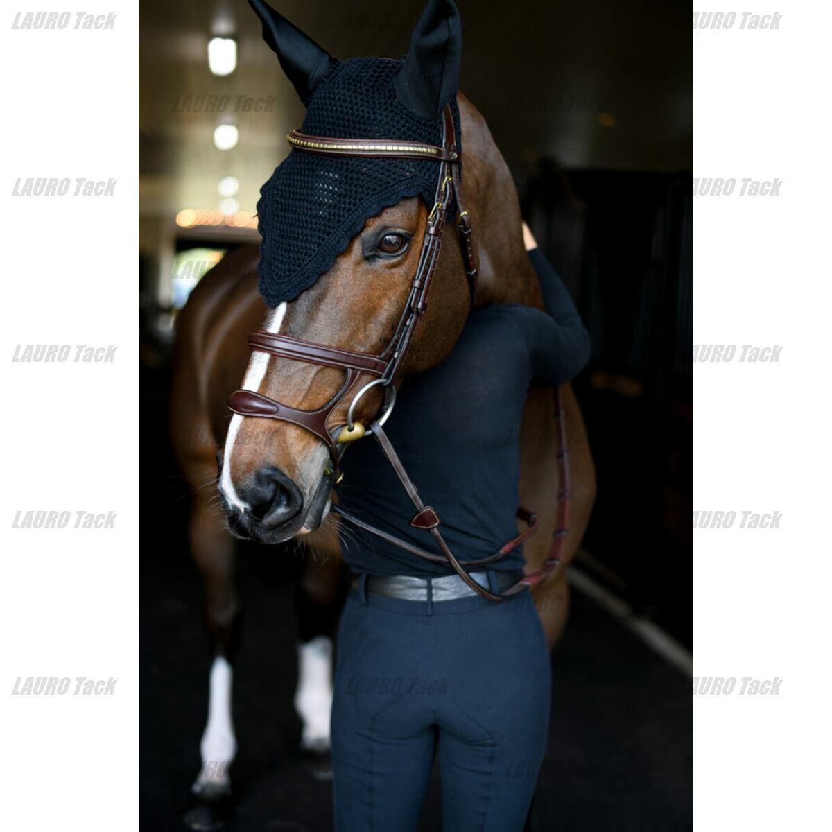 ブラウンレザーに真鍮の装飾を施した額革。温かみと気品を兼ね備えたデザインで、馬体に自然に溶け込みます。丈夫でしなやかな素材を使用しているため、快適なフィット感と高い耐久性を両立。普段の練習から競技会まで幅広く使える一本です。
