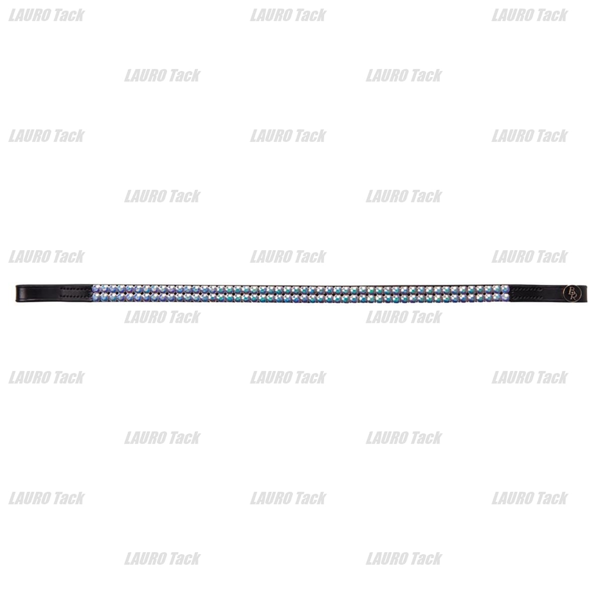 ブラックレザーにライン状のラインストーンをあしらった額革。繊細な輝きが馬の表情を美しく見せ、競技会やイベントでひときわ映える存在に。見た目の華やかさだけでなく、しっかりとした作りで実用性も兼ね備えています。上品なアクセントを求めるライダーにおすすめです。
