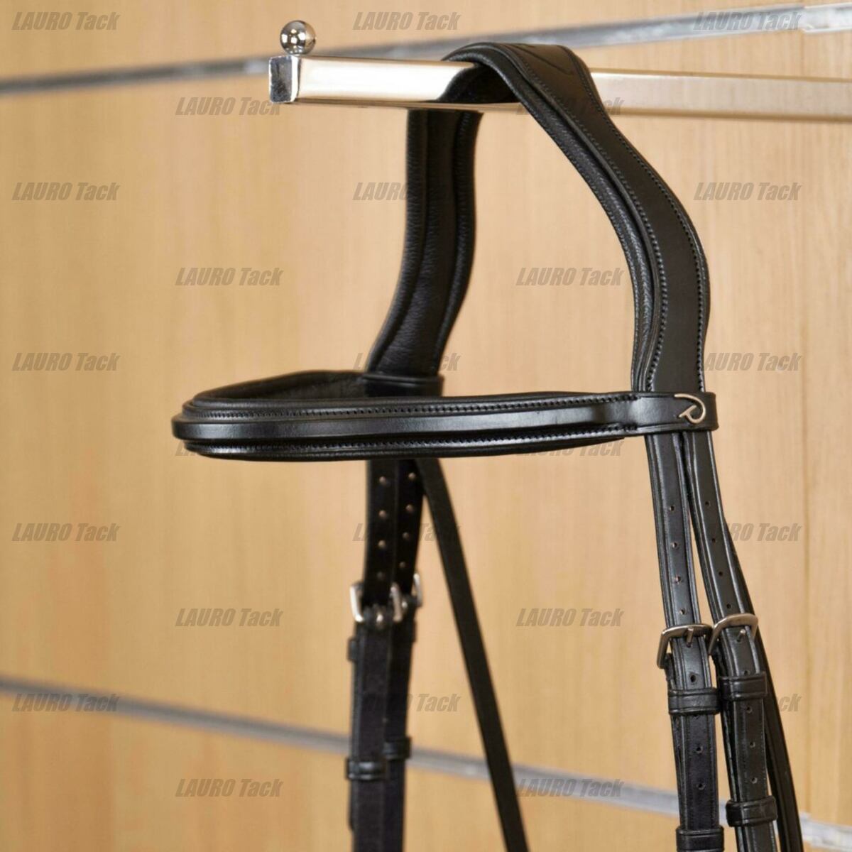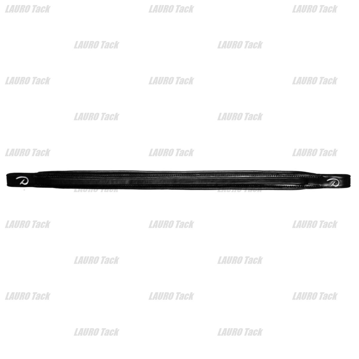 ストレートデザインのブラックレザー額革。無駄のない直線的なラインがすっきりとした印象を与え、馬の顔立ちを引き締めます。シンプルなデザインはどんな頭絡にも合わせやすく、普段の練習から競技会まで幅広く活躍する一本です。