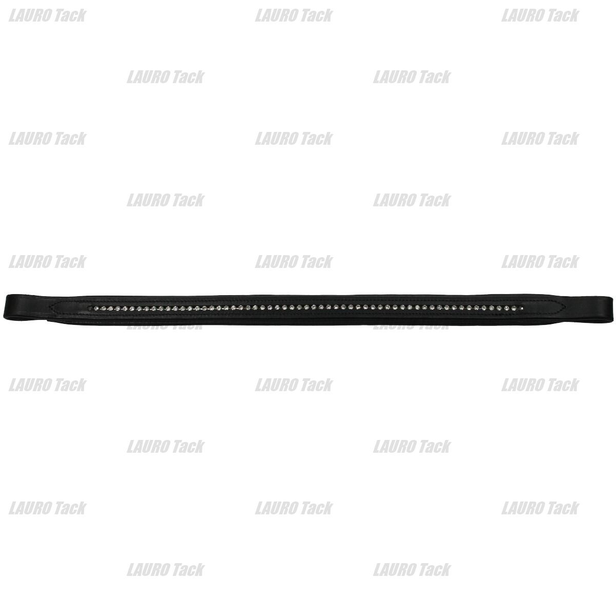 ブラックレザーにクリスタルをちりばめたストーン装飾の額革。華やかなきらめきが馬の顔を引き立て、特別なシーンでの存在感は抜群。上質なレザーを使用し、見た目だけでなく快適性や耐久性も十分。日常使いにも競技会にも映えるラグジュアリーなアイテムです。