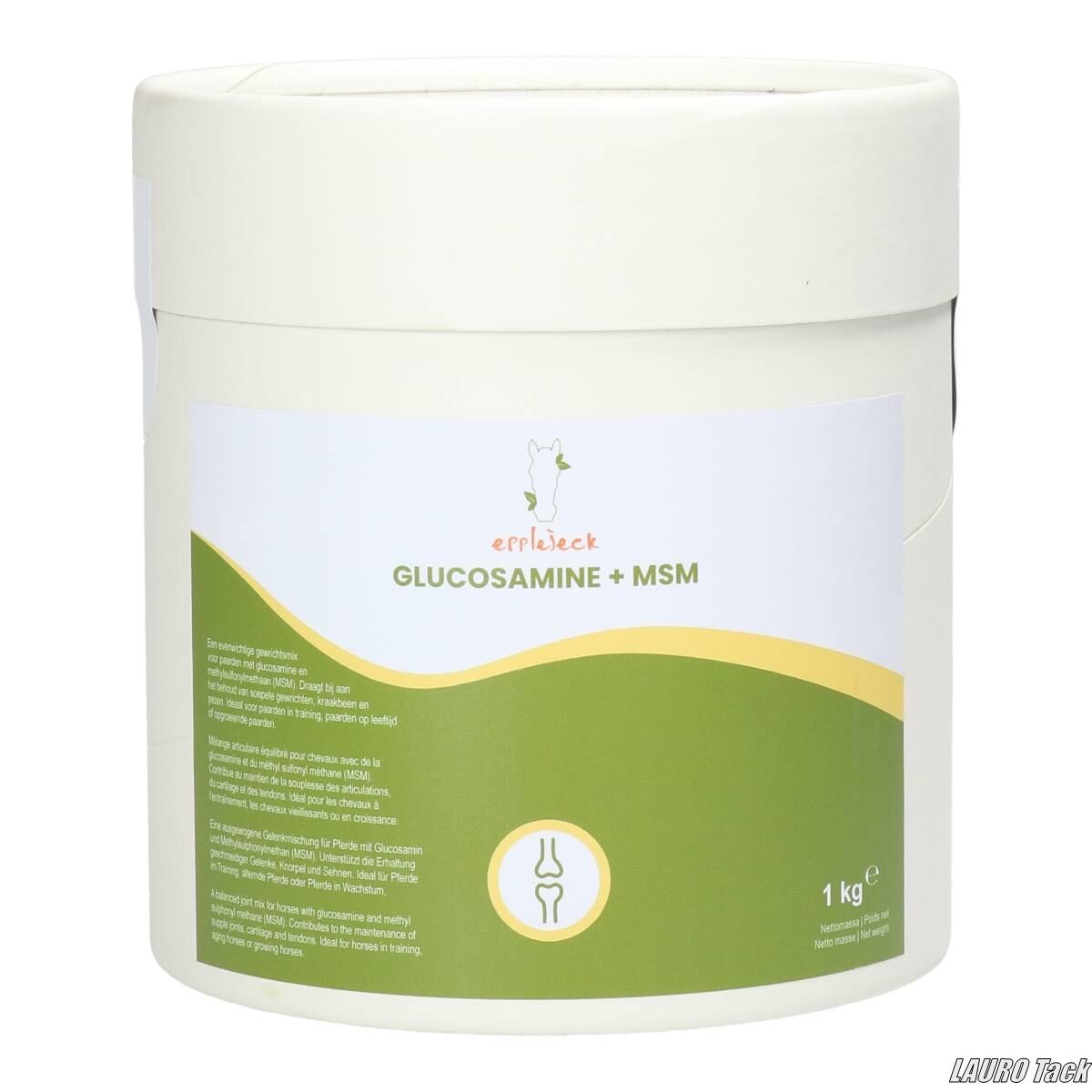 Epplejeckの粉末補助飼料。GlucosamineとMSMを配合し、関節や軟骨の健康をサポートします。柔軟な動きを維持し、日常のケアや運動時に役立ちます。