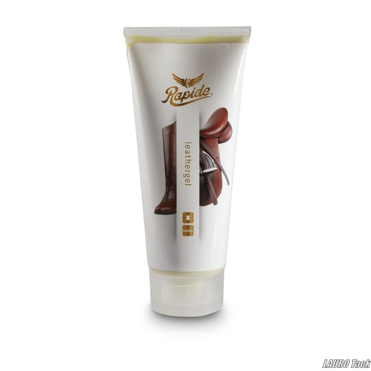 Rapideのレザーゲル。革をやさしく洗浄しながら栄養を補給してくれるジェルタイプのケア用品。柔らかさとツヤを保つのに役立ちます。