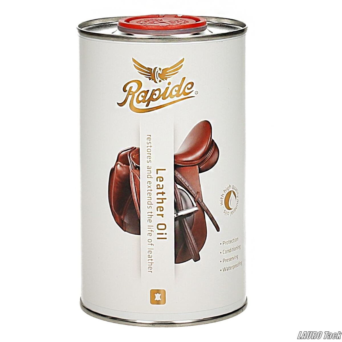 Rapideのレザーオイル(無色)。どんな色の革にも使いやすく、乾燥した革にうるおいを与えて柔らかさを取り戻します。日常のメンテナンスに最適です。