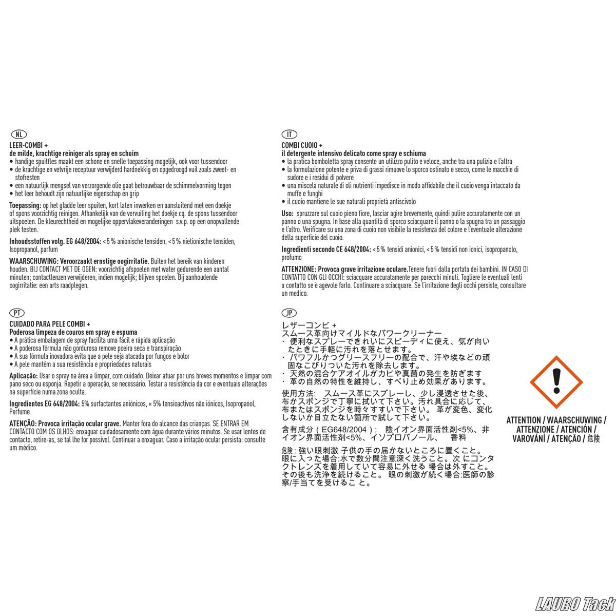 Effaxのレザーコンビ+。泡とスプレーのダブル機能を備えたパワフルなクリーナー。すべての革に効果的で、頑固な汚れも落とします。