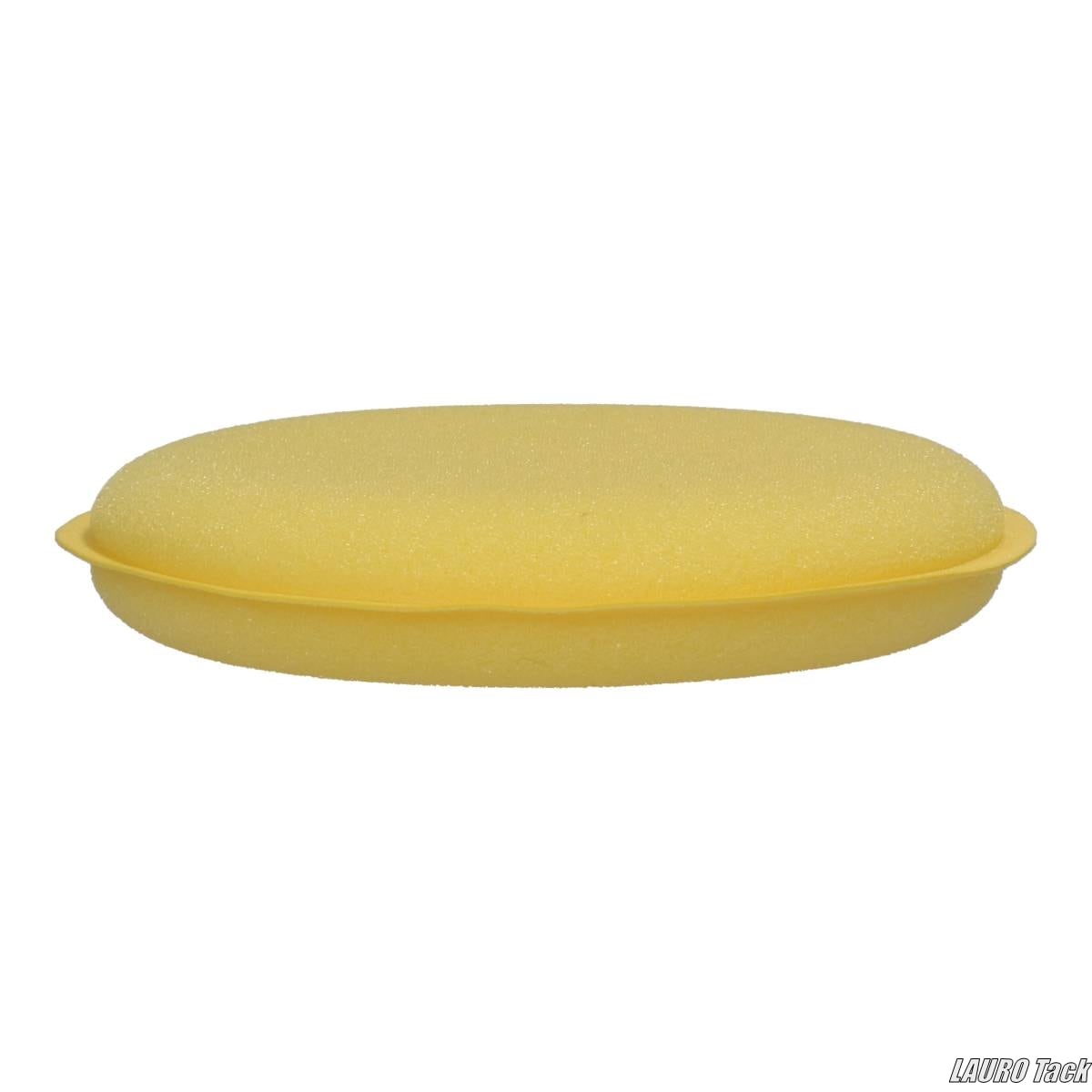 Epplejeckのレザーケアスポンジ(イエロー)。革のお手入れ用に設計されたスポンジで、洗浄にも仕上げにも使えます。持ちやすい形で日常的に活躍します。