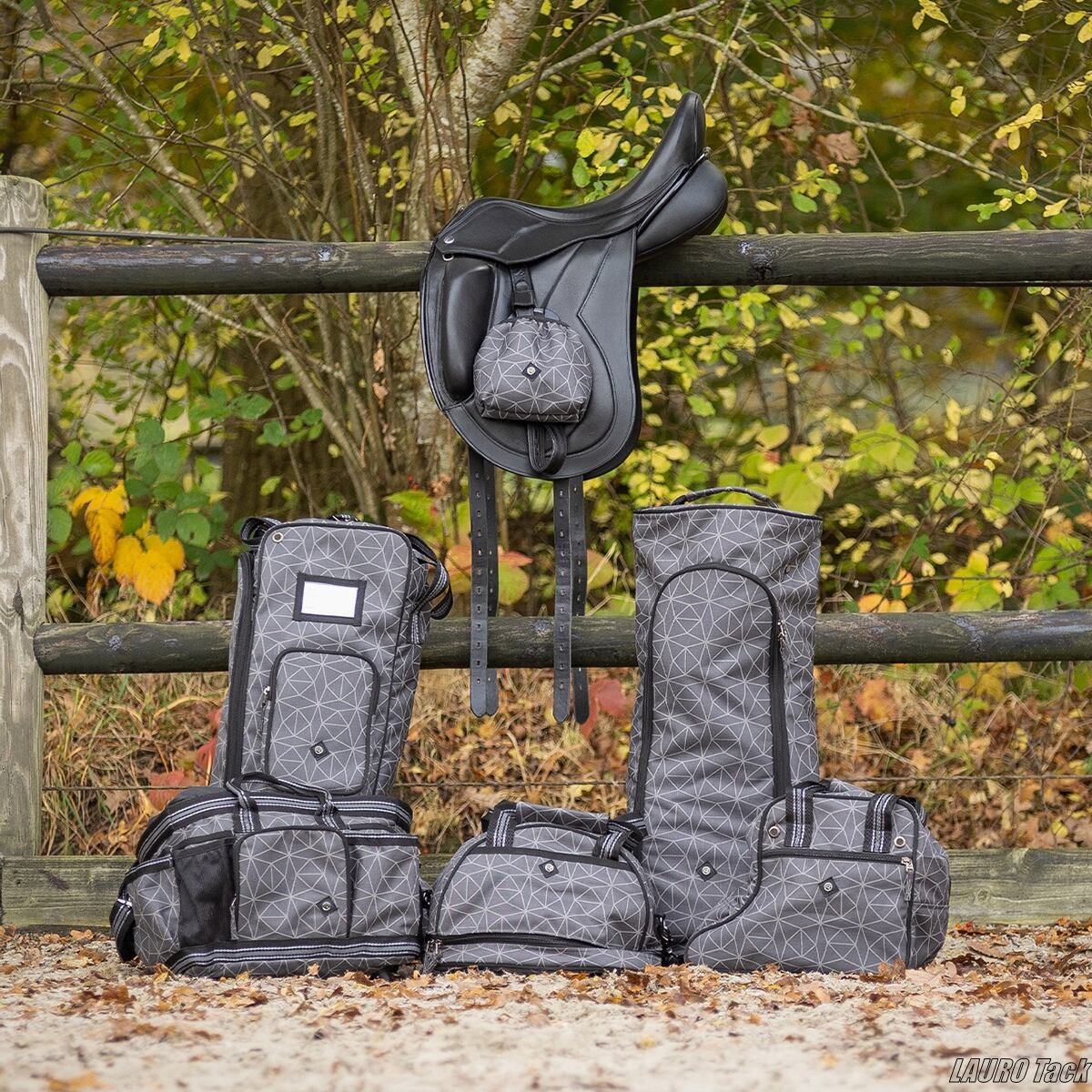 QHPの鐙カバー コレクション(グレー)。落ち着いた色合いでどんな鞍にも合わせやすいデザイン。鐙でつく擦れや汚れを防ぎ、輸送や保管時にも安心です。ペア販売。