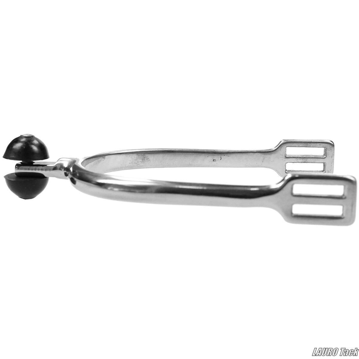 BRのインパルス拍車(Impuls)。先端にラバー製のローラーを備え、馬に軽いパルスのような刺激を与えるタイプ。ステンレススチール製で、馬にやさしく作用する設計です。
