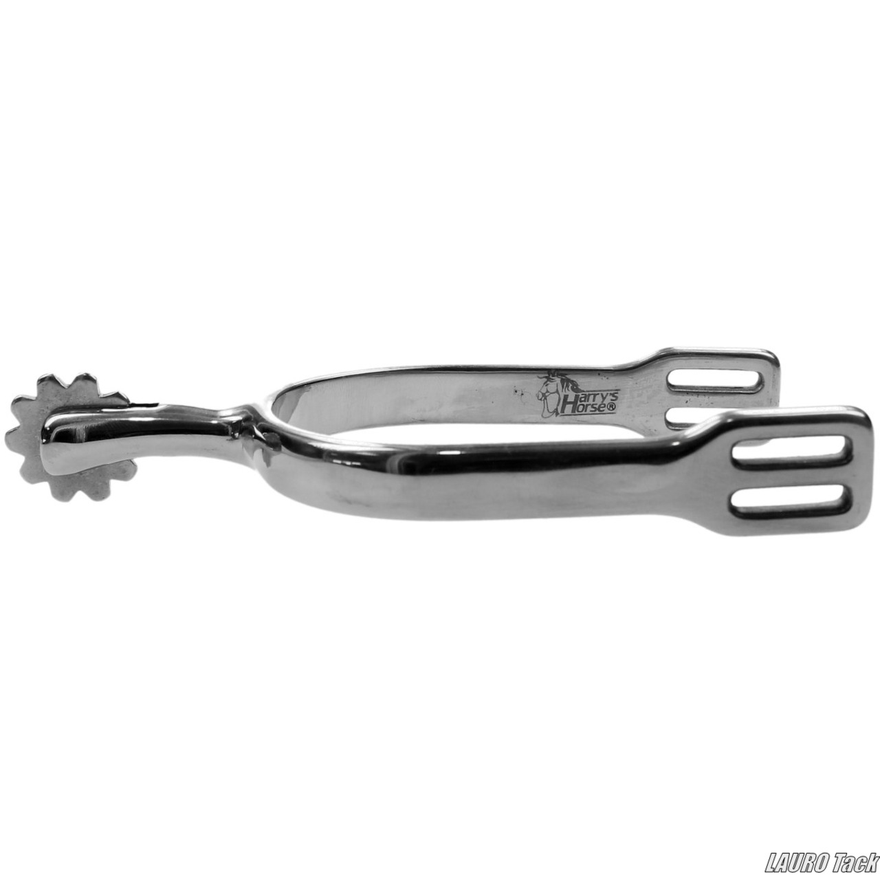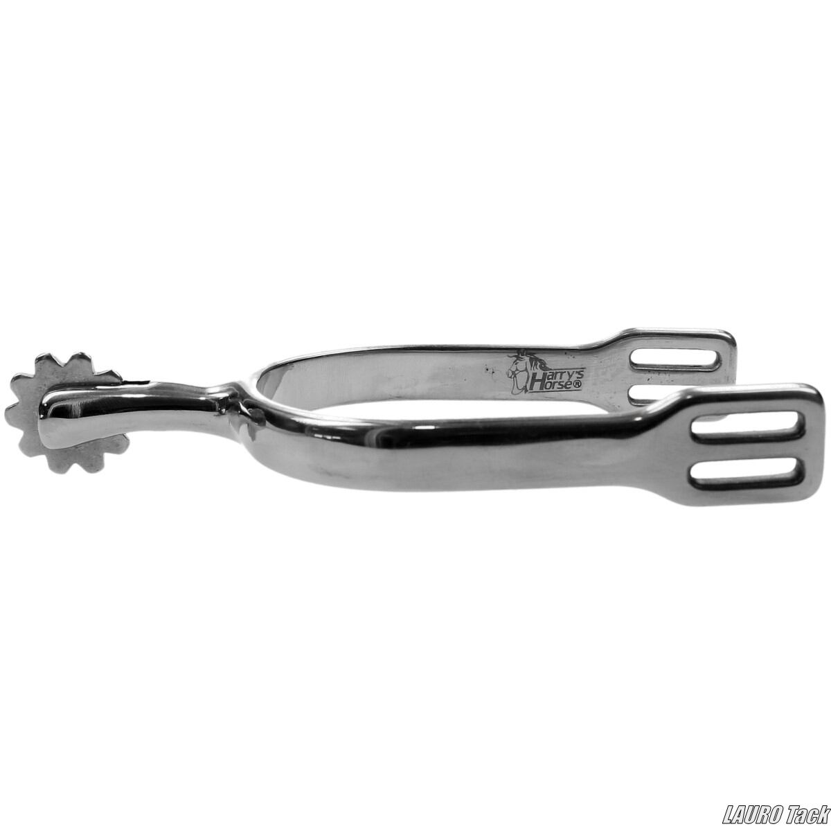 Harry's Horseのシュルタイス拍車(Schultheiss)。先端にローラーが付いたタイプで、30mmの長さがあります。ステンレススチール製で丈夫、伝統的なスタイルの拍車です。