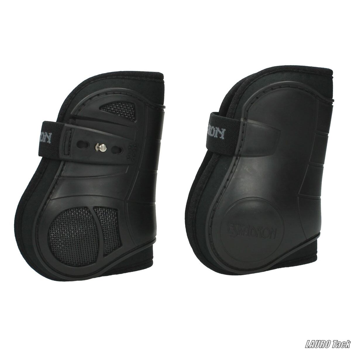 EskadronのFlexisoft Air後肢用ブーツ(ブラック)は、ダイナミックなルックスと高い機能性を両立したモデルです。外殻には通気チャネルが組み込まれ、メッシュで保護されているため空気の循環が最適化され、脚を涼しく快適に保ちます。内側のネオプレンは柔らかく衝撃吸収性に優れ、快適な使用感を提供。丈夫な外殻が衝撃や擦れから脚を守り、毎日の騎乗から競技まで頼れる安心感のあるブーツです。