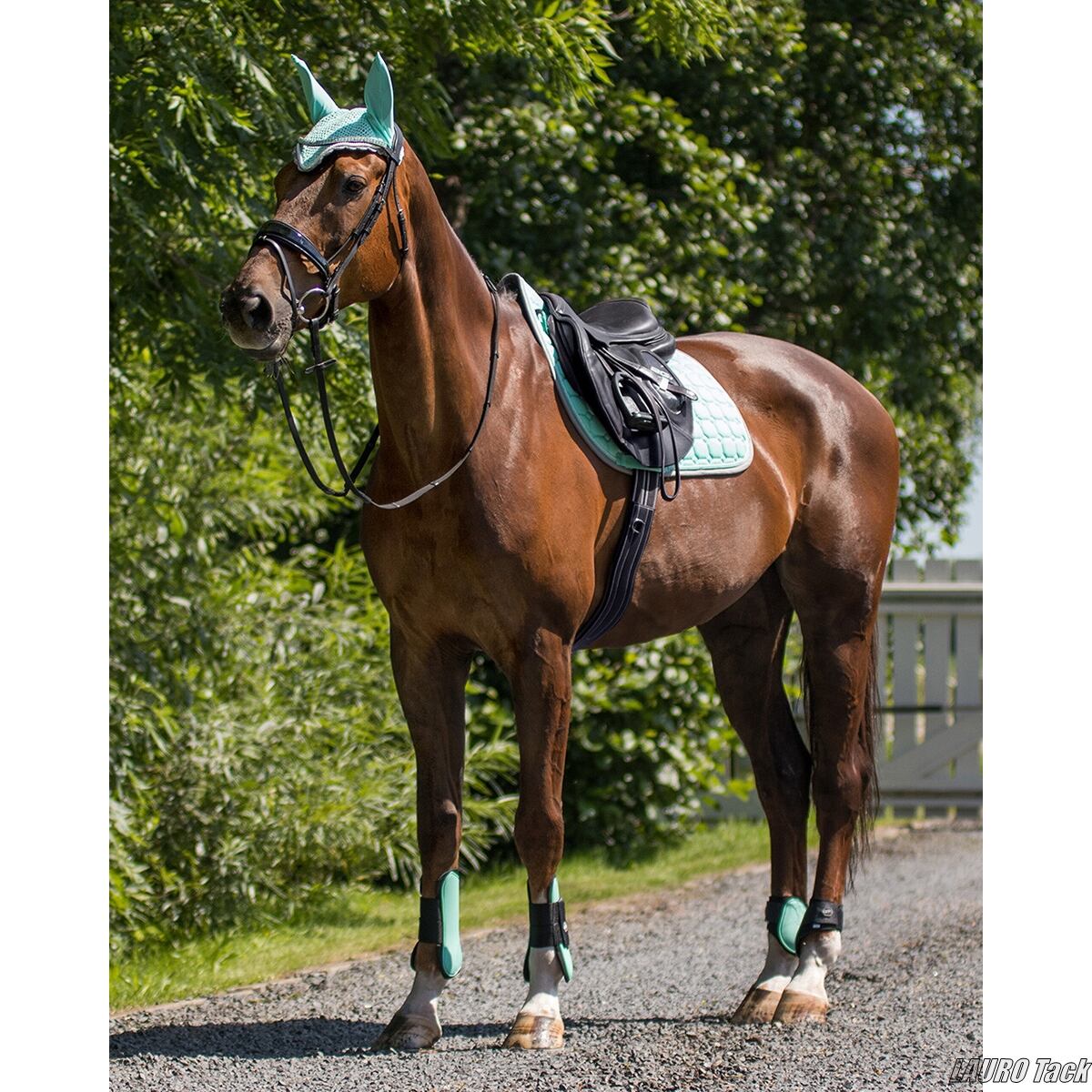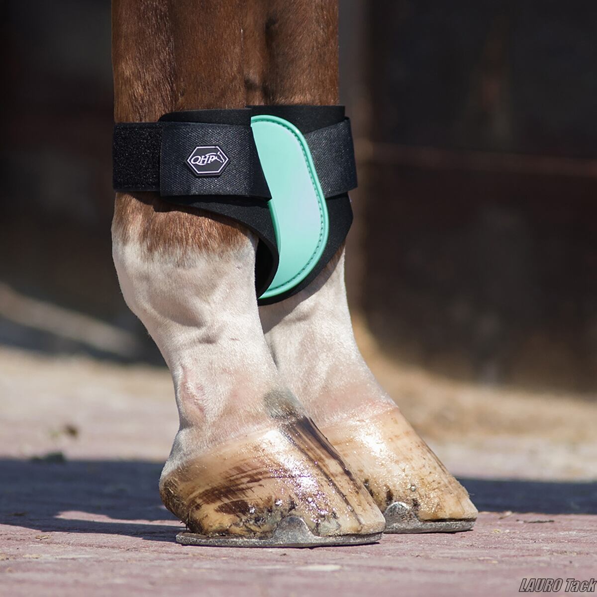 QHPの後肢用ブーツ(グリーン)は、トレンディな印象のあるベーシックモデルです。外殻は丈夫なプラスチック、内側は柔らかな素材で仕上げられており、快適さと保護性能を両立。ベルクロクロージャーで簡単に装着でき、シェットランドから成馬まで幅広く対応。鮮やかなグリーンが騎乗を彩ります。