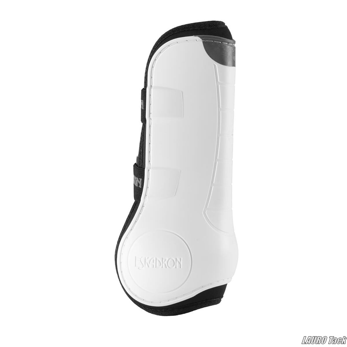 EskadronのFlexisoft前肢用ブーツ(ホワイト)は、ブラックモデルと同じく強度のある保護カバーを採用。内側は通気性の良いネオプレンで、熱を効率的に逃がして快適さを保ちます。軽量で衝撃吸収性に優れ、シンプルな装着方法で日常の騎乗から競技まで活躍する一足です。