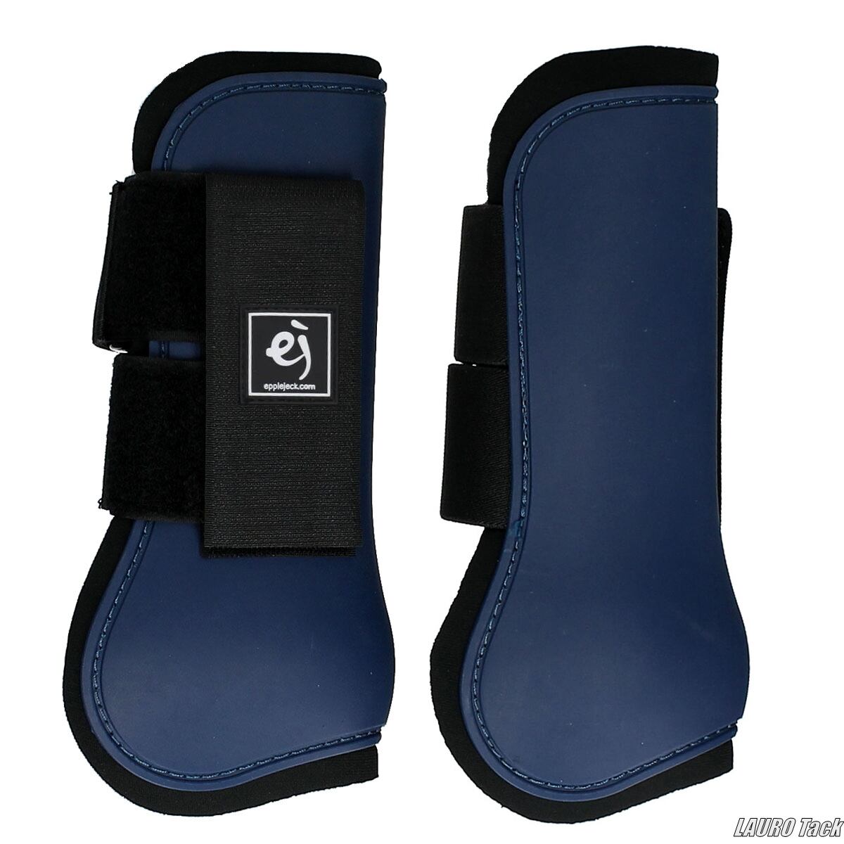 EpplejeckのProride前肢用ブーツ(ダークブルー×ブルー)は、トレンディなデザインが魅力のモデルです。外側は丈夫なプラスチック、内側は柔らかなネオプレンを採用。伸縮素材を使ったベルクロストラップで固定しやすく、洗いやすい仕様です。サイズはポニー21cm、コブ22cm、フル25cmと明確に設定されています。