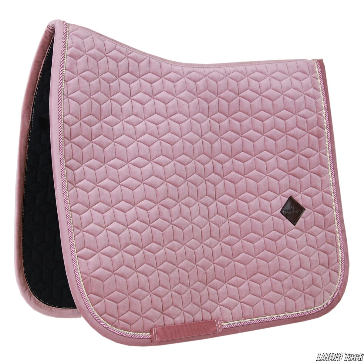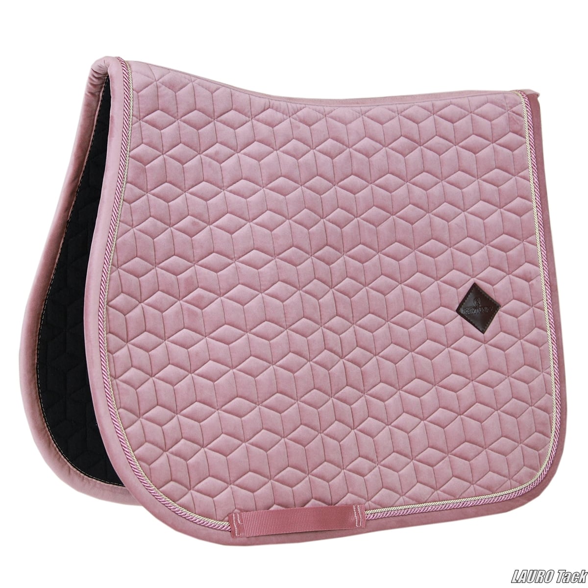 KentuckyのVelvetサドルパッド(ミッドピンク)は、柔らかいベルベット素材を使用した華やかなモデルです。上品な光沢と鮮やかなカラーが特徴で、快適さとデザイン性を両立。中綿は通気性と衝撃吸収性を備え、普段の騎乗から競技まで幅広く使えます。