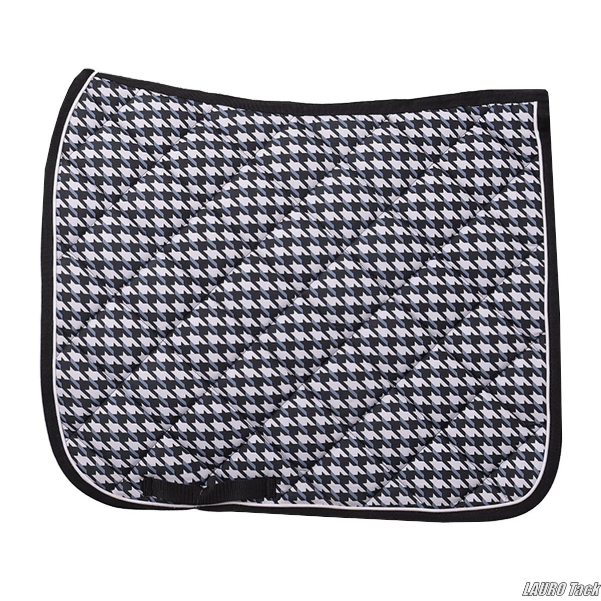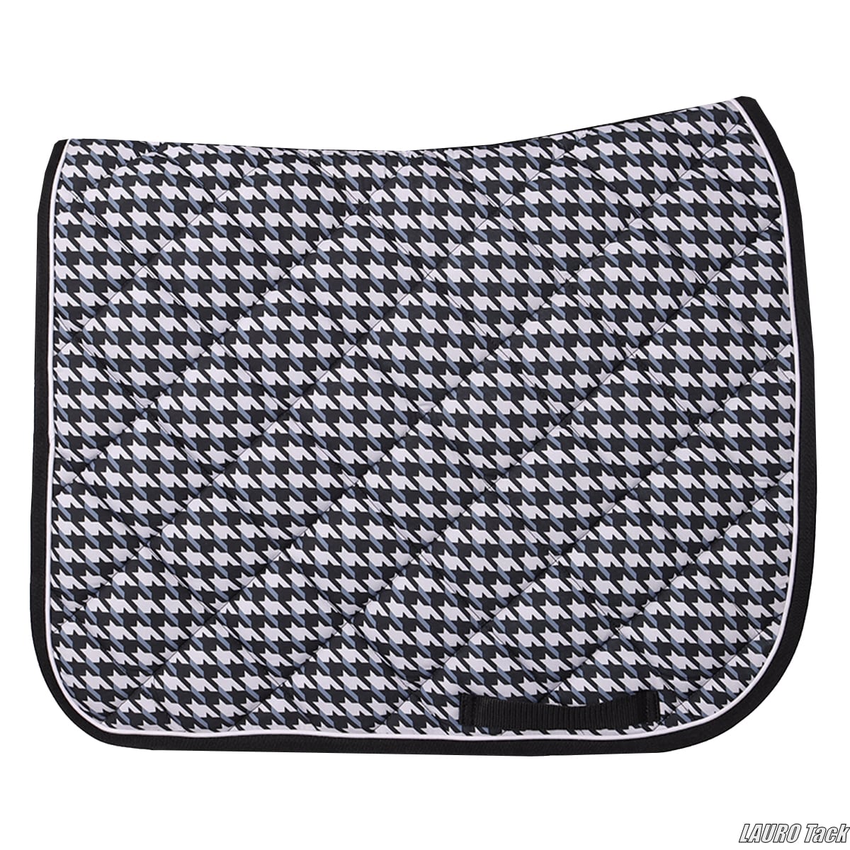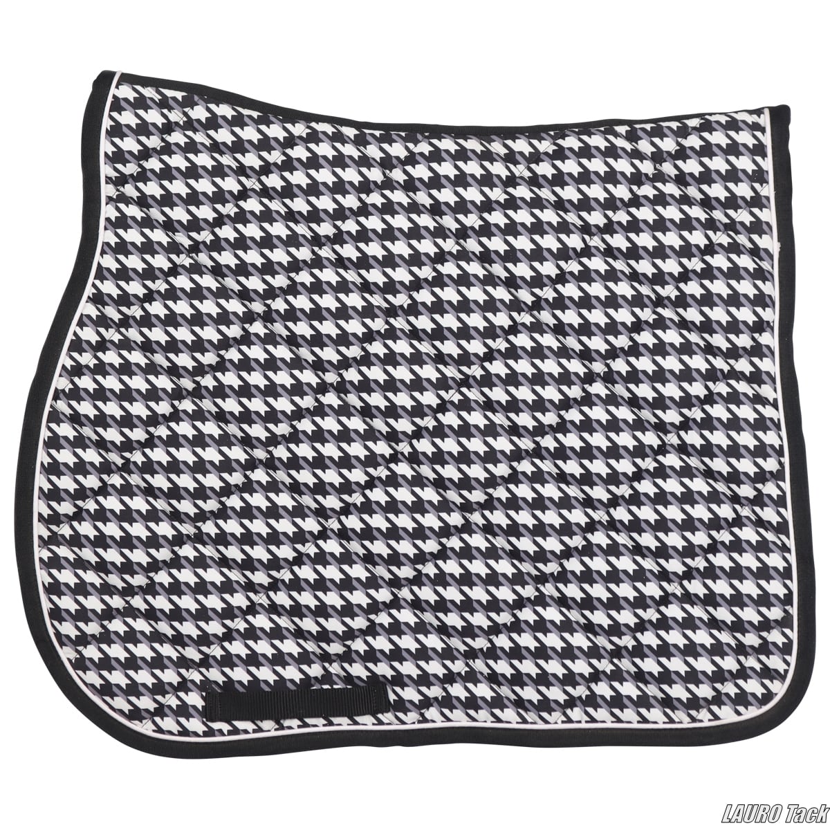 EpplejeckのEJPied De Pouleゼッケン(ブラック×ホワイト)は、千鳥格子柄を取り入れた個性的なデザインが目を引くモデルです。丈夫で柔らかなキルティングが馬体にしっかりフィットし、吸湿性と通気性を確保。普段の練習から競技まで、スタイリッシュに使える一枚です。