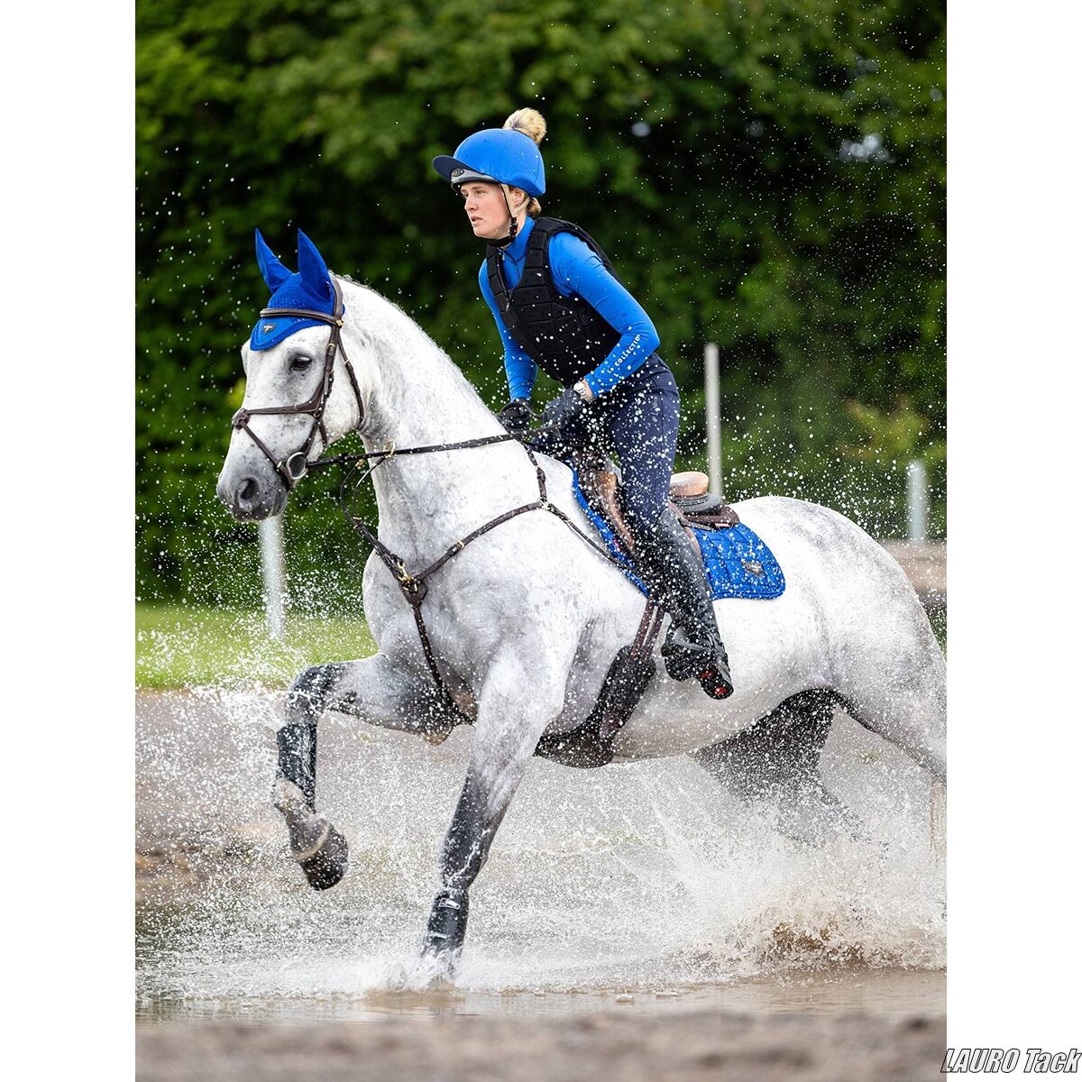 LeMieuxのLoire Square Close Contactゼッケン(ブルー)は、コンタクトタイプの鞍に合わせやすい設計で、美しい光沢としっかりとしたキルティングが高級感を演出します。通気性や吸湿性にも優れており、上品で実用的なモデルです。