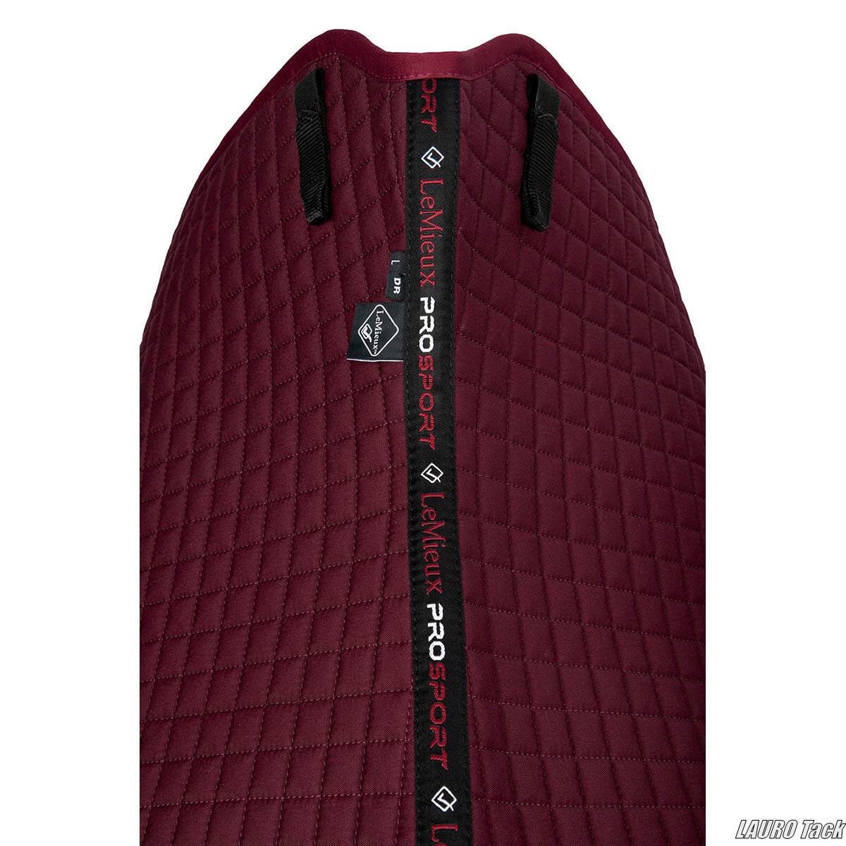 LeMieuxのSquare Cottonゼッケン(ダークレッド)は、綿素材を使用したシンプルで実用的なモデルです。通気性と吸湿性に優れ、厚みのあるキルティングで馬体に心地よくフィット。鮮やかなレッドカラーが鞍とのコントラストを際立たせます。