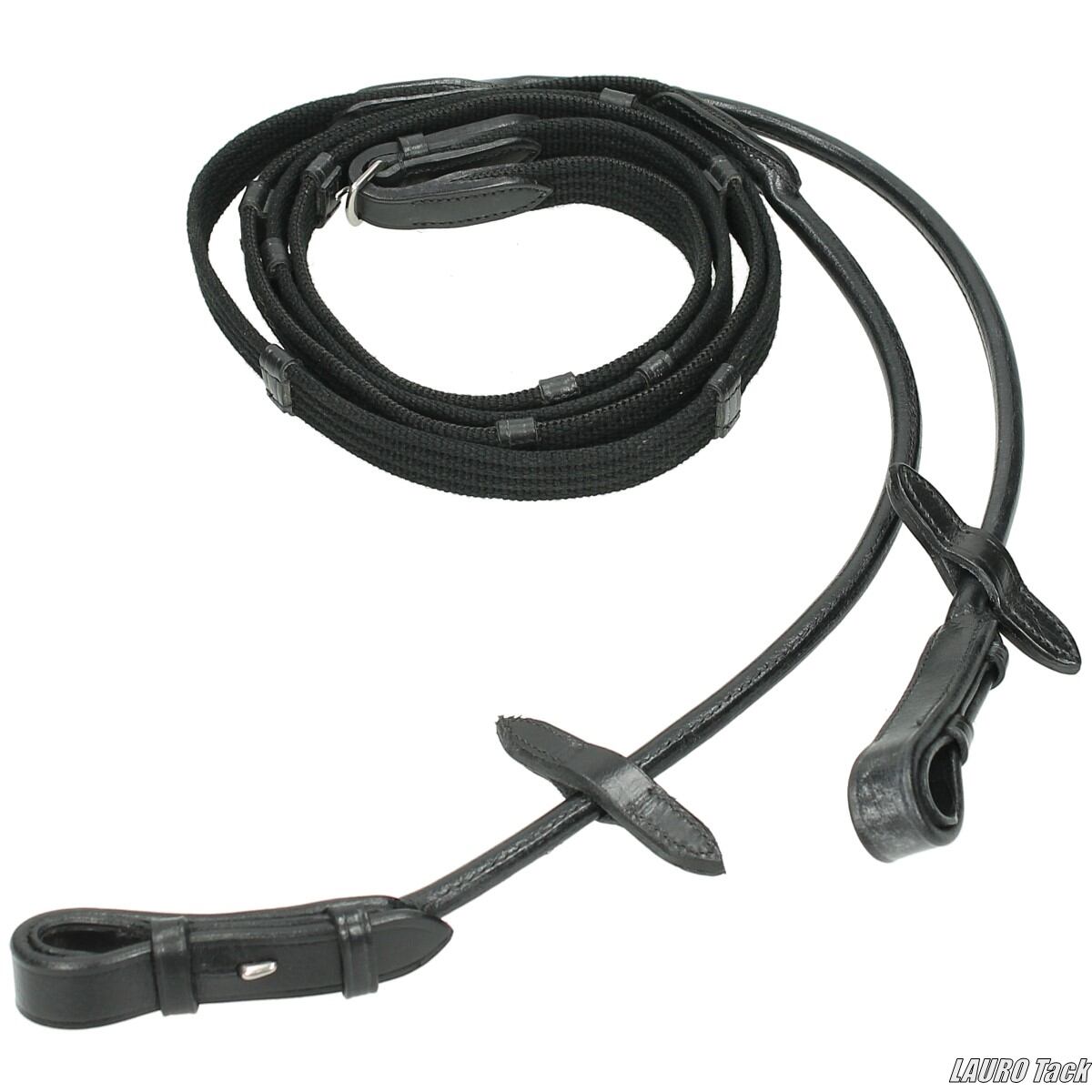 コットン織り素材で作られた丈夫な手綱は、縫い込み加工が施されており長く使える安心感があります。滑りにくく握りやすいため、日常のレッスンから競技まで幅広く活躍。シンプルなブラックカラーでどんな頭絡にも合わせやすいデザインです。