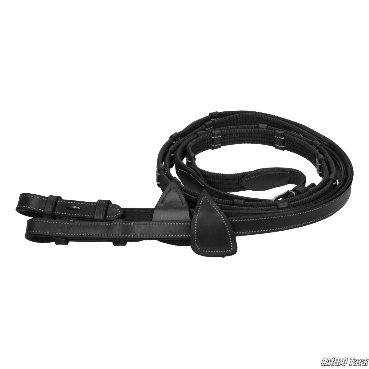 Dy’onワーキングコレクションの手綱は、等間隔にストッパーが付いており指の位置を安定させやすい設計。ブラックの上質なレザーを使っているので耐久性が高く、使うほどに手に馴染みます。レッスンや競技に信頼して使えるアイテムです。
