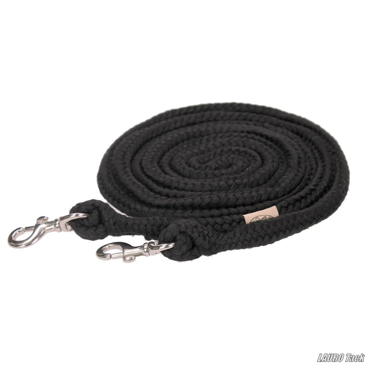 F.R.A.のMadora手綱は、ブラックの編み込みデザインが特徴的で、クラシックかつスタイリッシュな雰囲気を演出します。握りやすく安定感があり、普段のレッスンや競技で活躍できる一本です。
