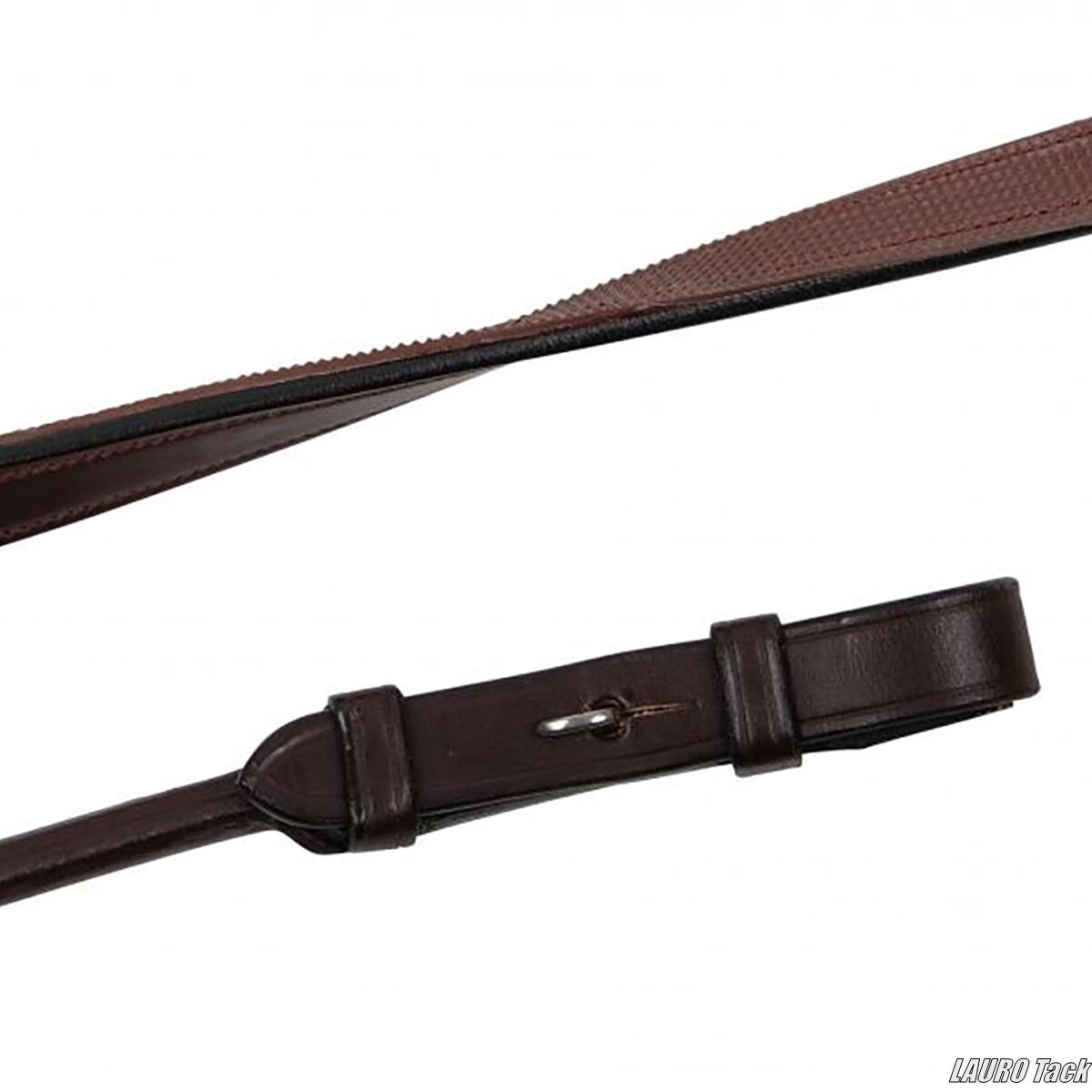 Montarのラバー手綱(ブラウン・ラウンドスティッチ×ブラインドクロージャー仕様)は、丸縫い仕上げで高級感があり、安定した操作を実現します。クラシカルなブラウンが落ち着いた印象を与え、見た目と機能性を兼ね備えたモデルです。