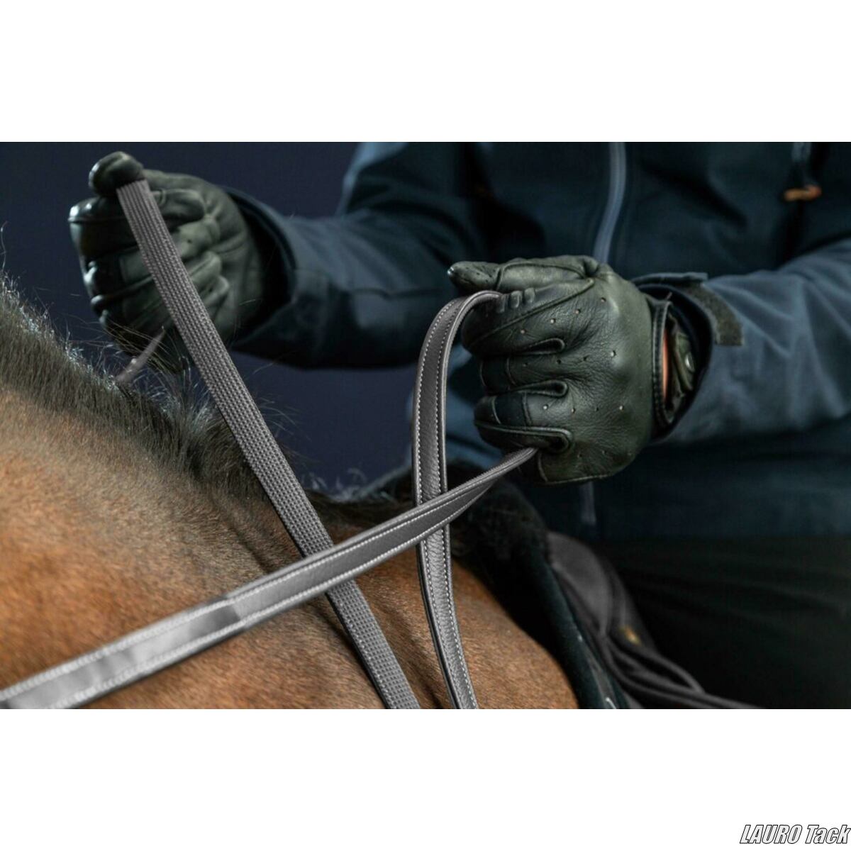 ブラックレザーのモデルは、余計な装飾を省いたシンプルな仕様が特徴です。軽やかで扱いやすく、普段のレッスンから競技まで幅広く活躍します。