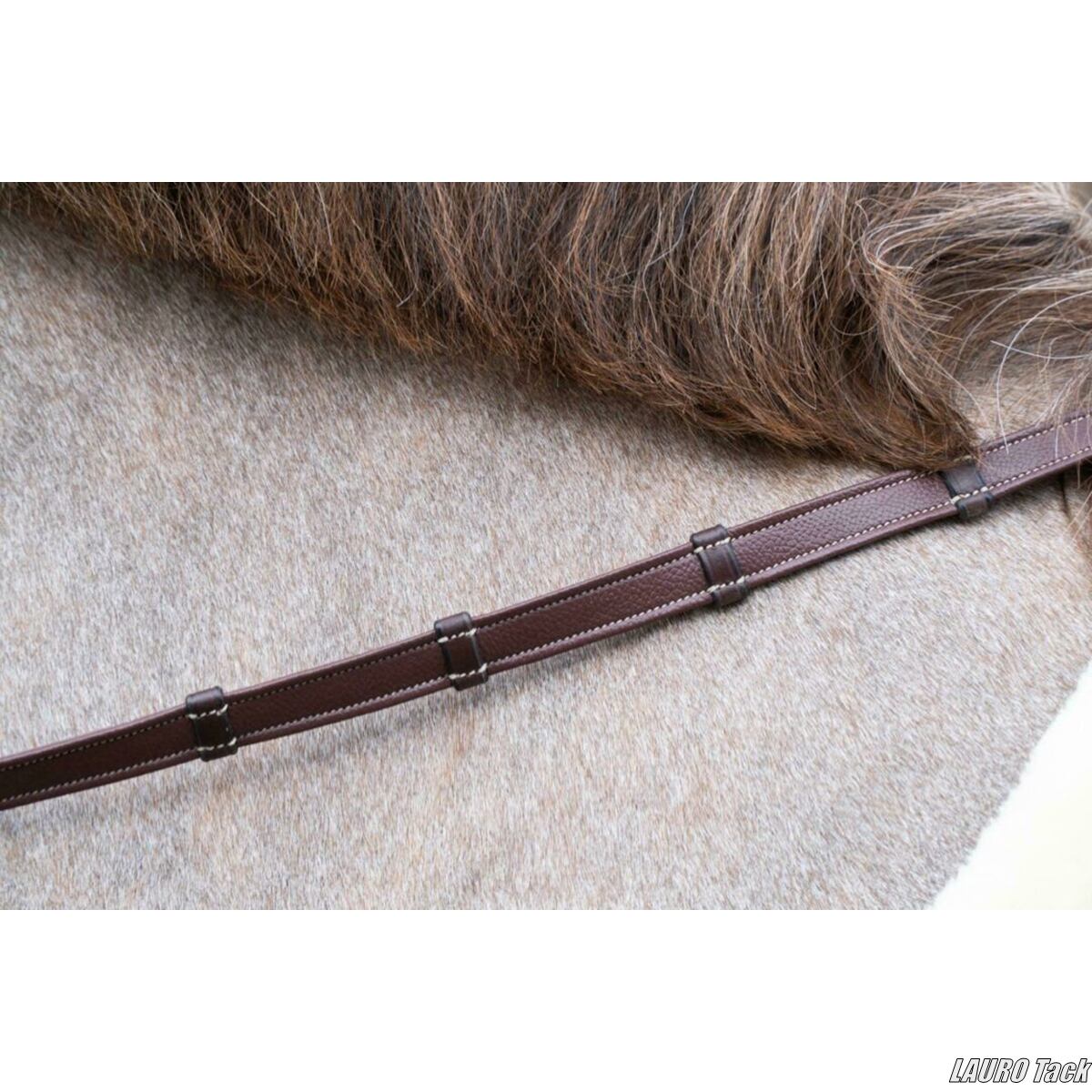 ブラウン仕様の幅5/8インチ(約16mm)タイプは、クラシックな見た目と実用性を兼ね備えています。ストッパーが指の位置を自然に導き、操作がしやすい設計です。