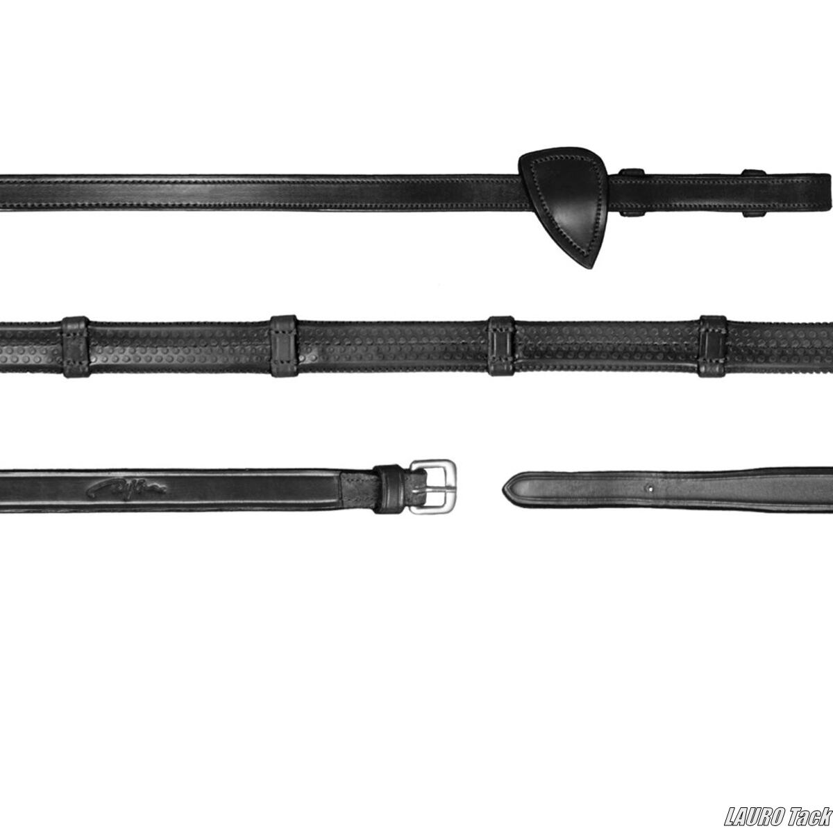 Dy’onのニューイングリッシュコレクションに属するストッパー付きのラバー仕様の手綱で、指の位置を安定させ正確な操作を助けます。汗や雨でも滑りにくく、緊張感のある競技でも安心して使えます。ブラックの色味が精悍な雰囲気を加え、力強さを演出します。