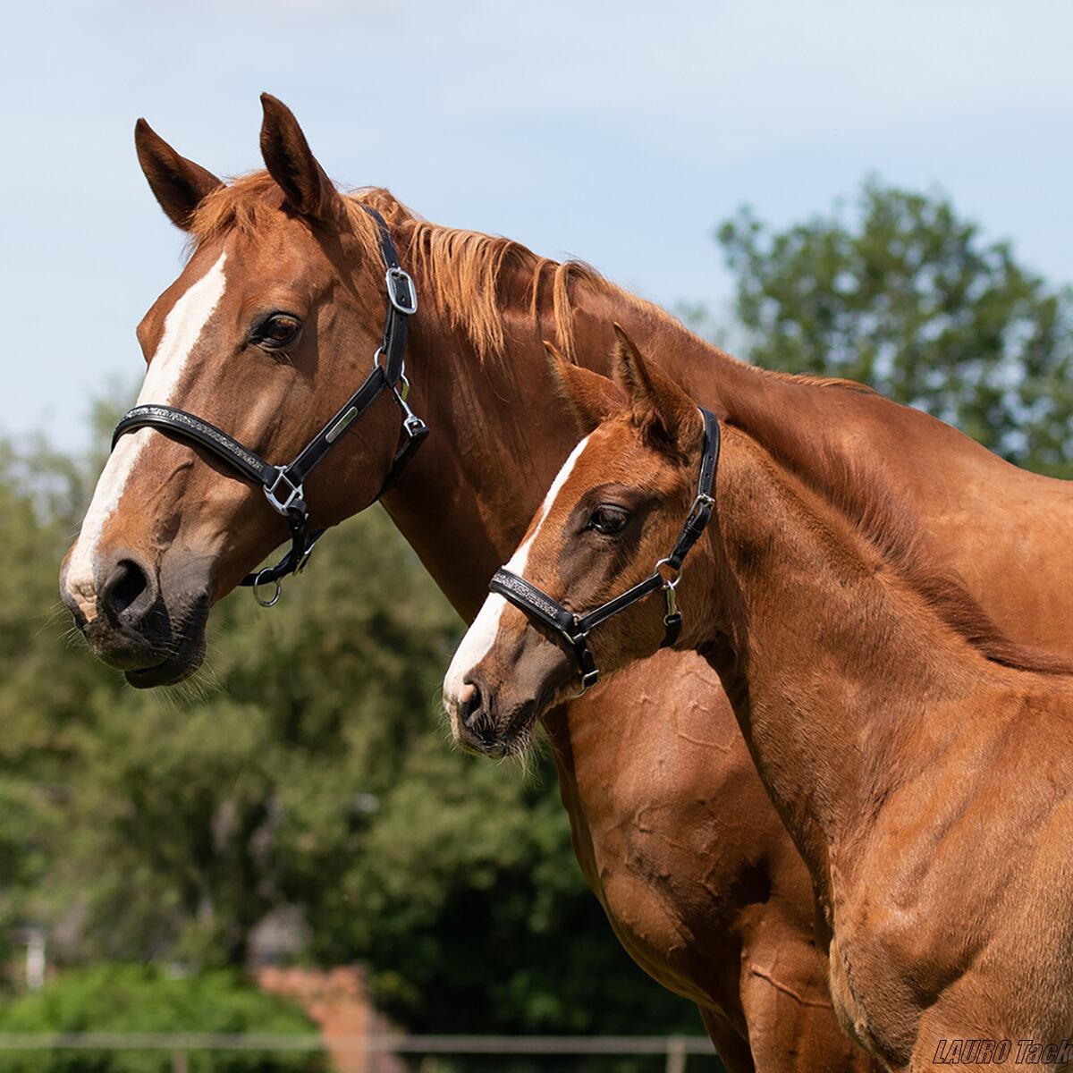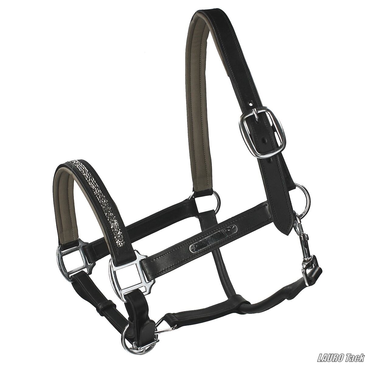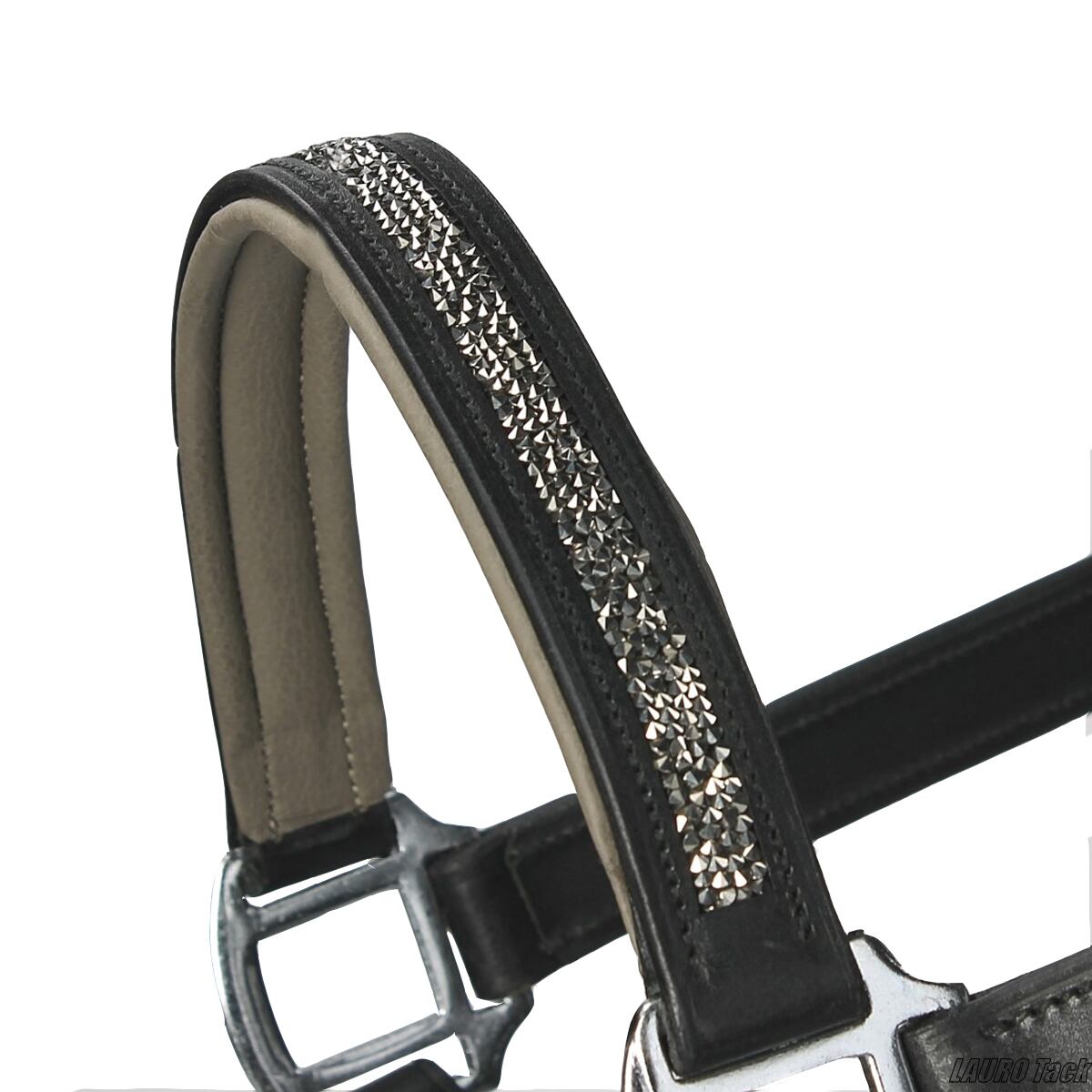 QHPのルピナスシリーズのレザー無口です。外側は頑丈なレザーで作られており、内側には柔らかい素材を加えて快適さを高めています。普段の練習や輸送時にも安心して使用でき、調整がしやすいのも特徴です。ブラックとグレーの組み合わせは、スタイリッシュでシックな雰囲気を醸し出します。