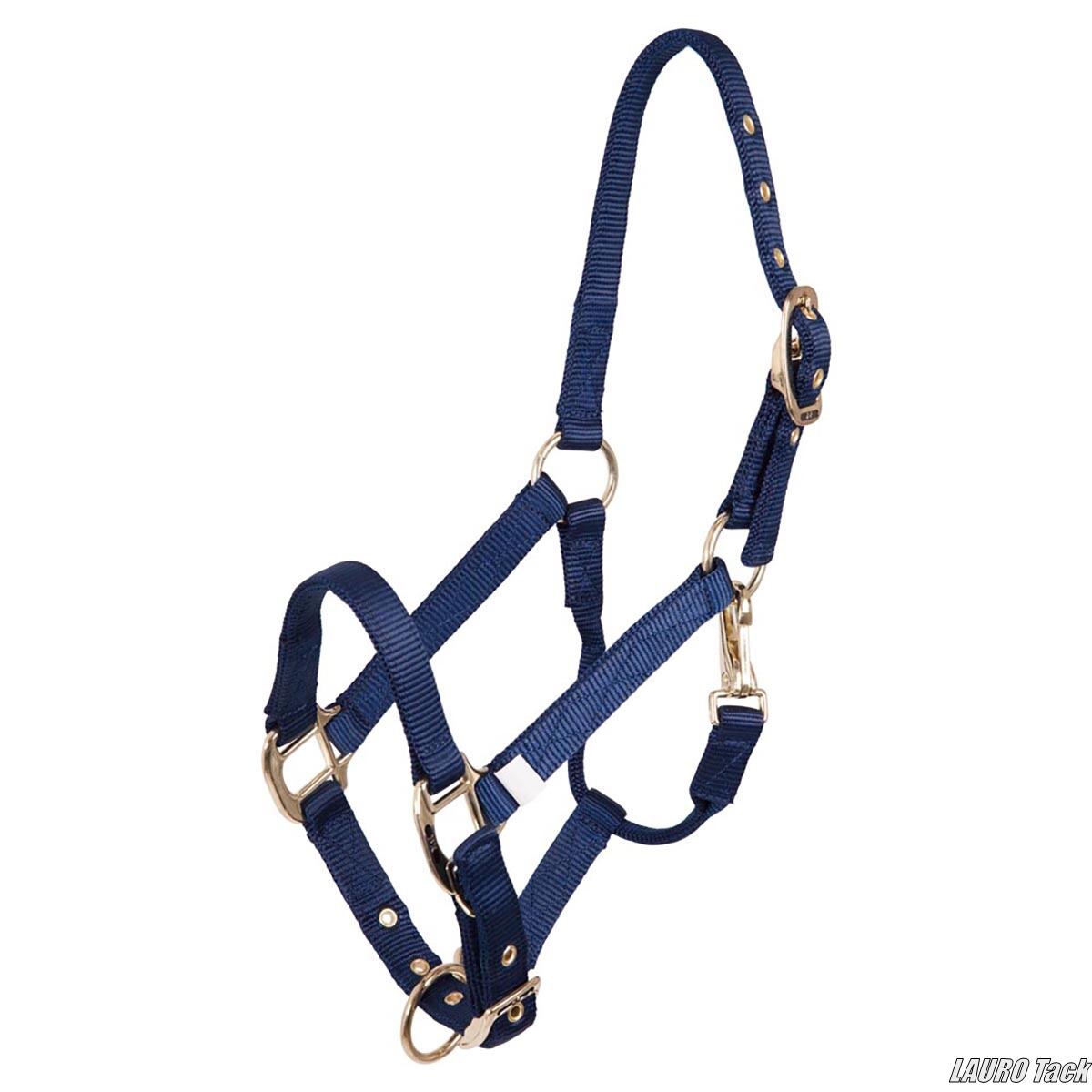 BRの子馬用無口。軽量で調整がしやすく、成長に合わせて長く使えます。ナイロン素材で日常の管理や放牧に適しており、ブルーは明るく爽やかな印象を与えます。