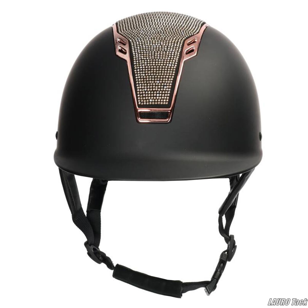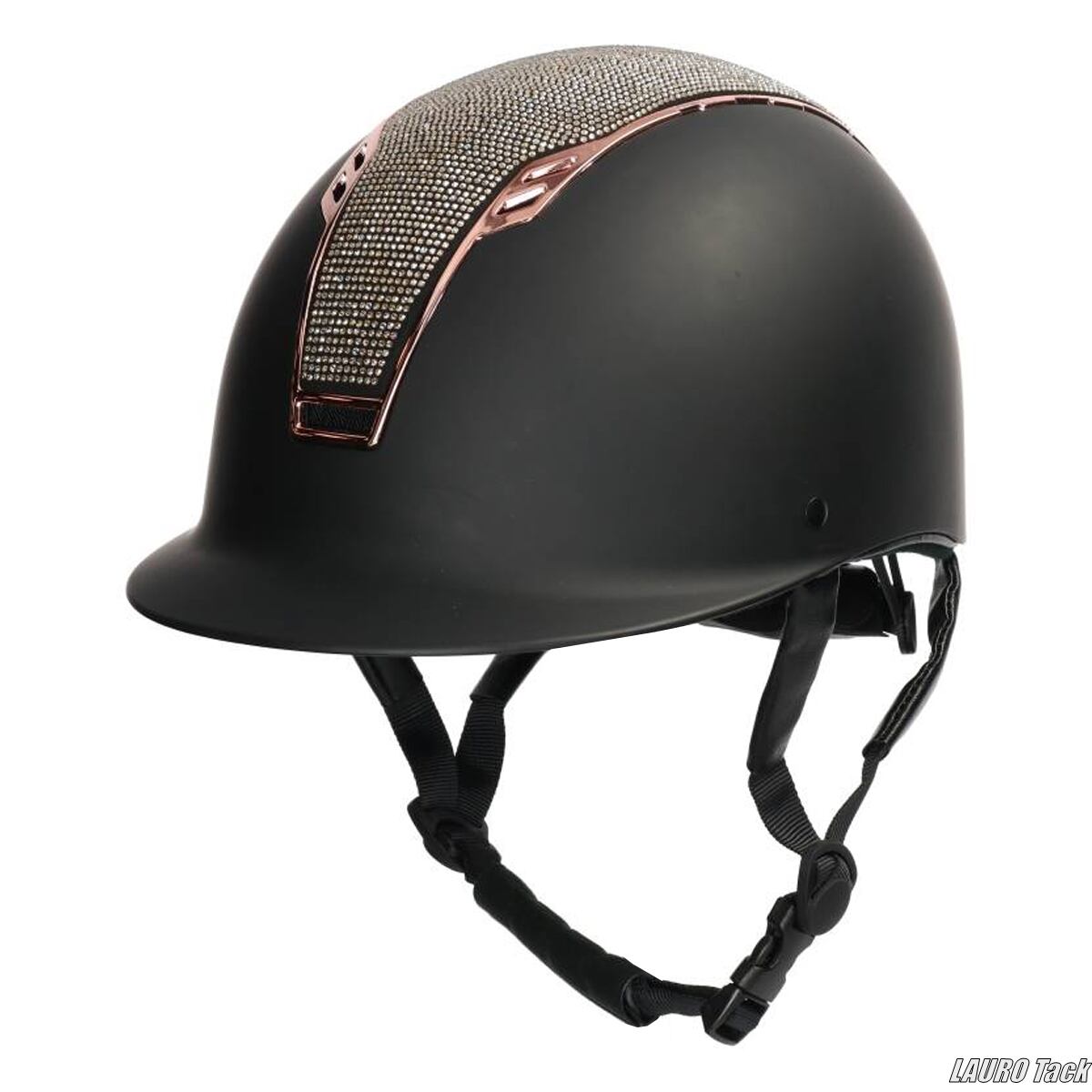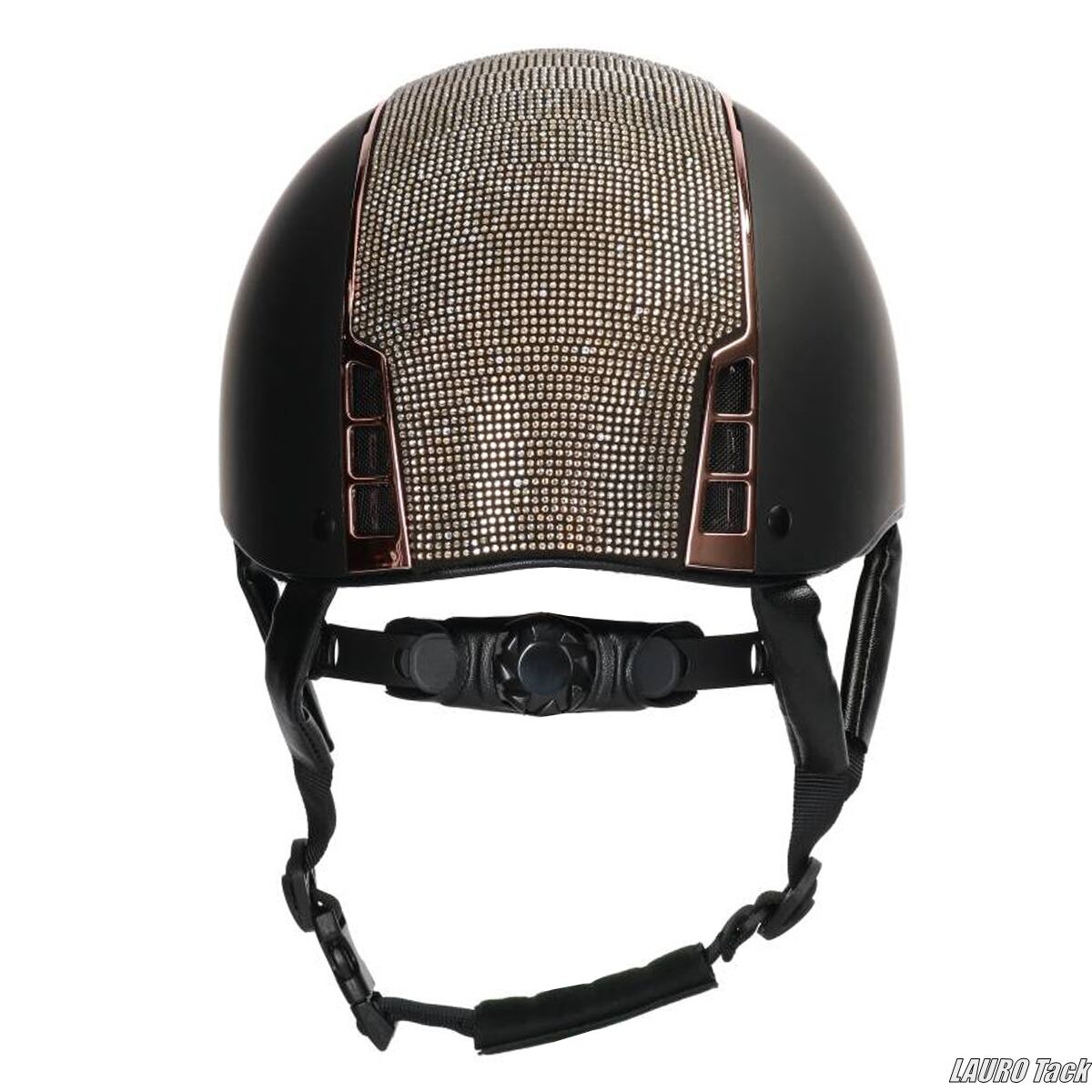 キラキラと輝くグリッターデザインが目を引くキャップ。後部のダイヤルで簡単にサイズ調整でき、軽量で快適なかぶり心地です。マットなシェルにローズゴールドのアクセントとトップのラインストーンをあしらい、CE VG1規格に準拠。ブラック×ゴールドの配色がラグジュアリーな雰囲気を演出します。