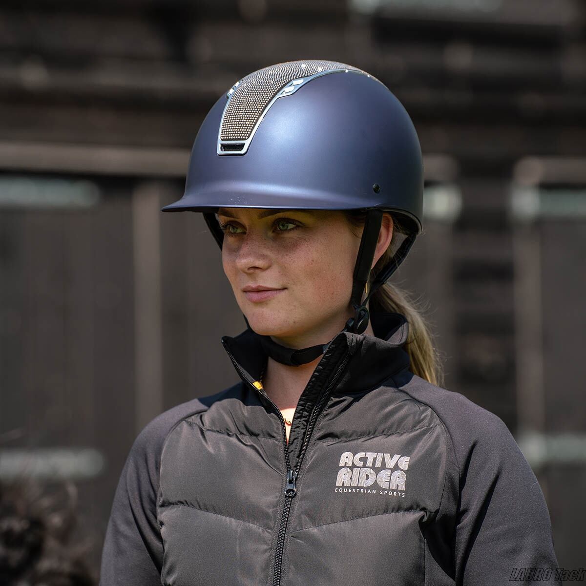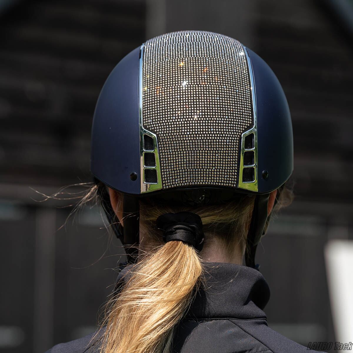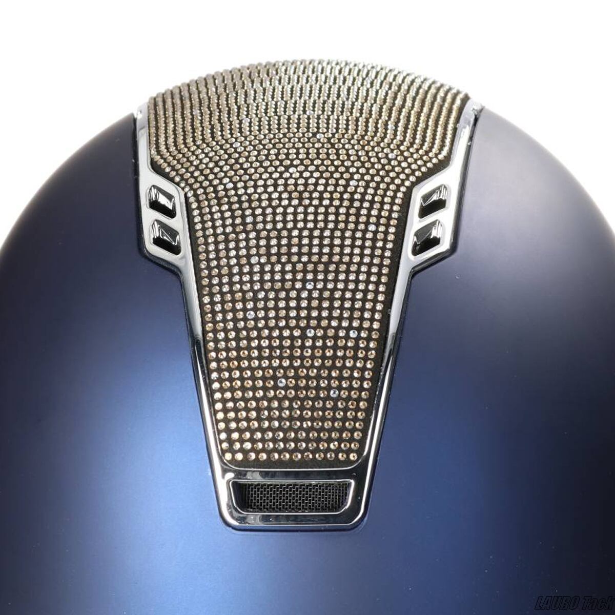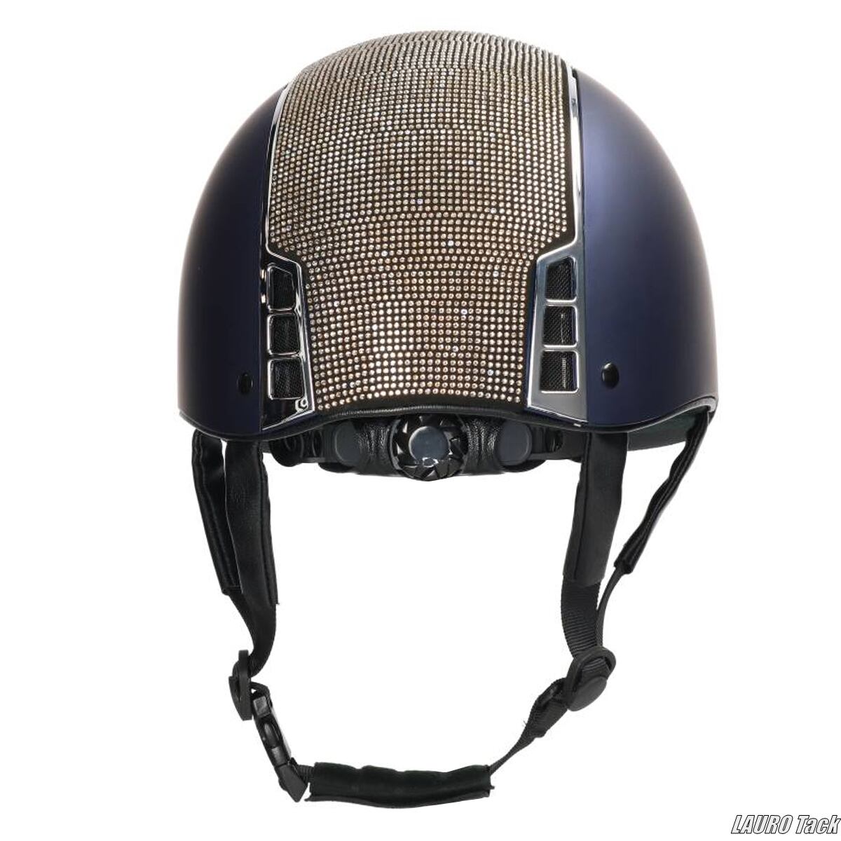 きらめくグリッターが特徴のキャップ。後部ダイヤルで調整でき、軽くて扱いやすい設計。マットシェルにローズゴールドのディテールとトップのラインストーンが組み合わされ、エレガントさをプラス。CE VG1規格に適合し、ダークブルー×シルバーの配色は上品で落ち着いた印象を与えます。