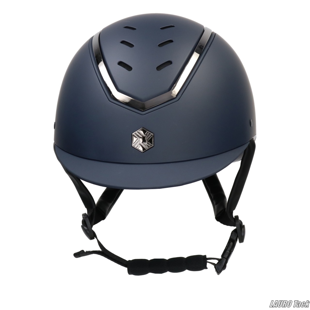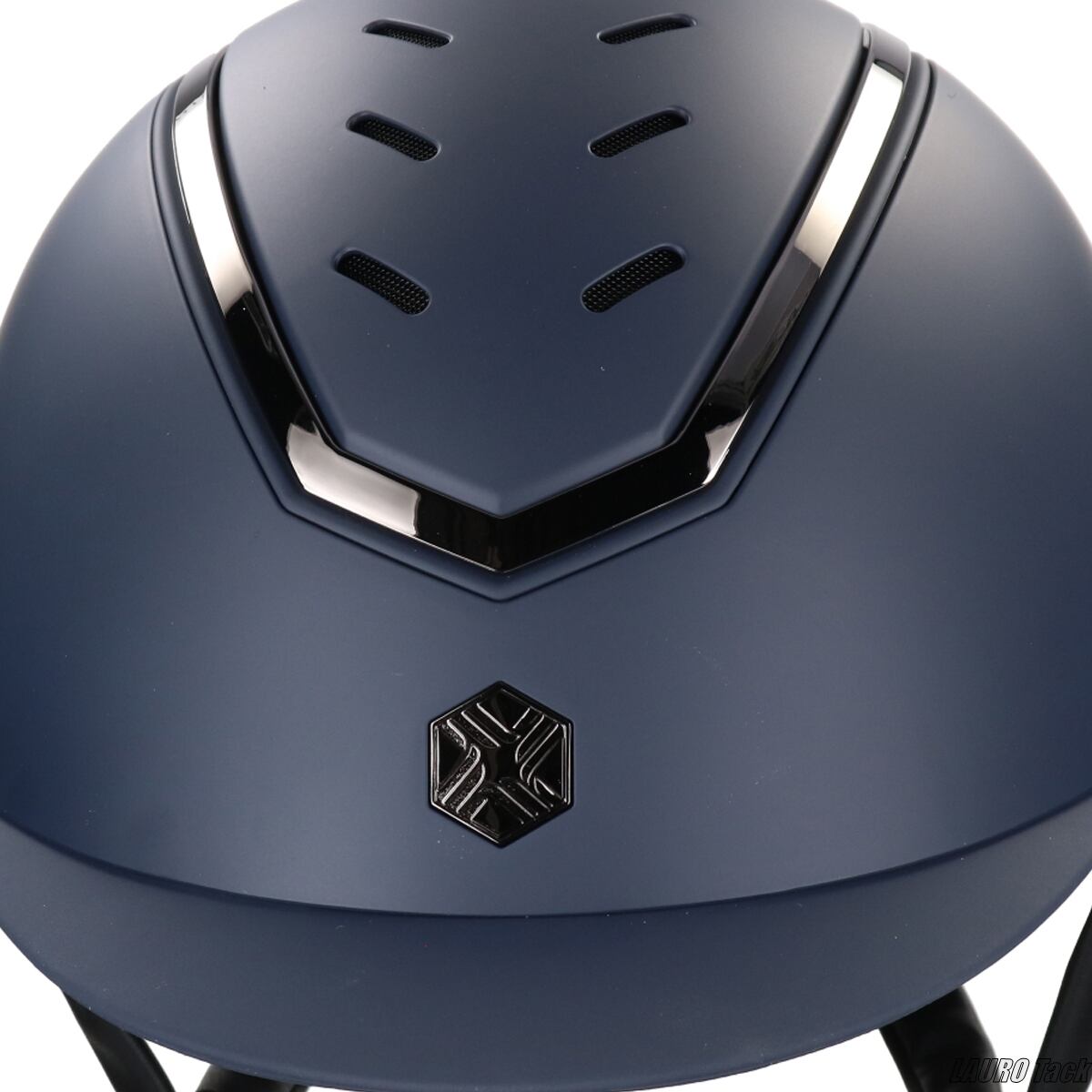深みのあるダークブルーのマット仕上げが魅力のヘルメット。軽量設計で快適に使え、サイズ調整も自在。取り外して洗える取り外して洗えるインナーで清潔に保てます。日常のレッスンから競技まで幅広く活躍するモデルです。