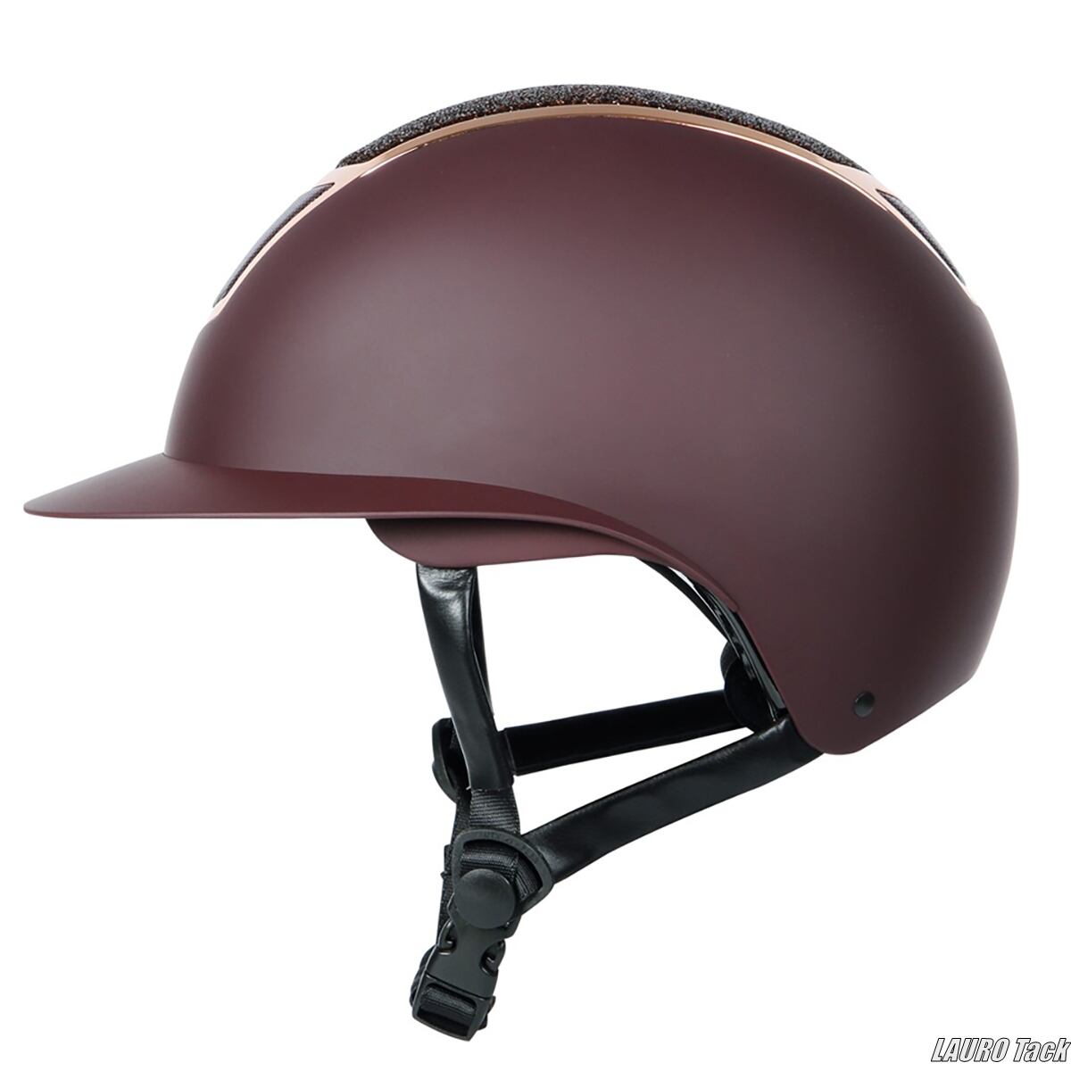 ダークレッドにゴールドスパークルを施した華やかなセーフティーヘルメット。マット仕上げの外装に幅広のバイザーを搭載し、通気孔で涼しさを保ちます。後部のダイヤルで調整でき、取り外して洗えるインナーで常に清潔。CE VG1規格に準拠しています。