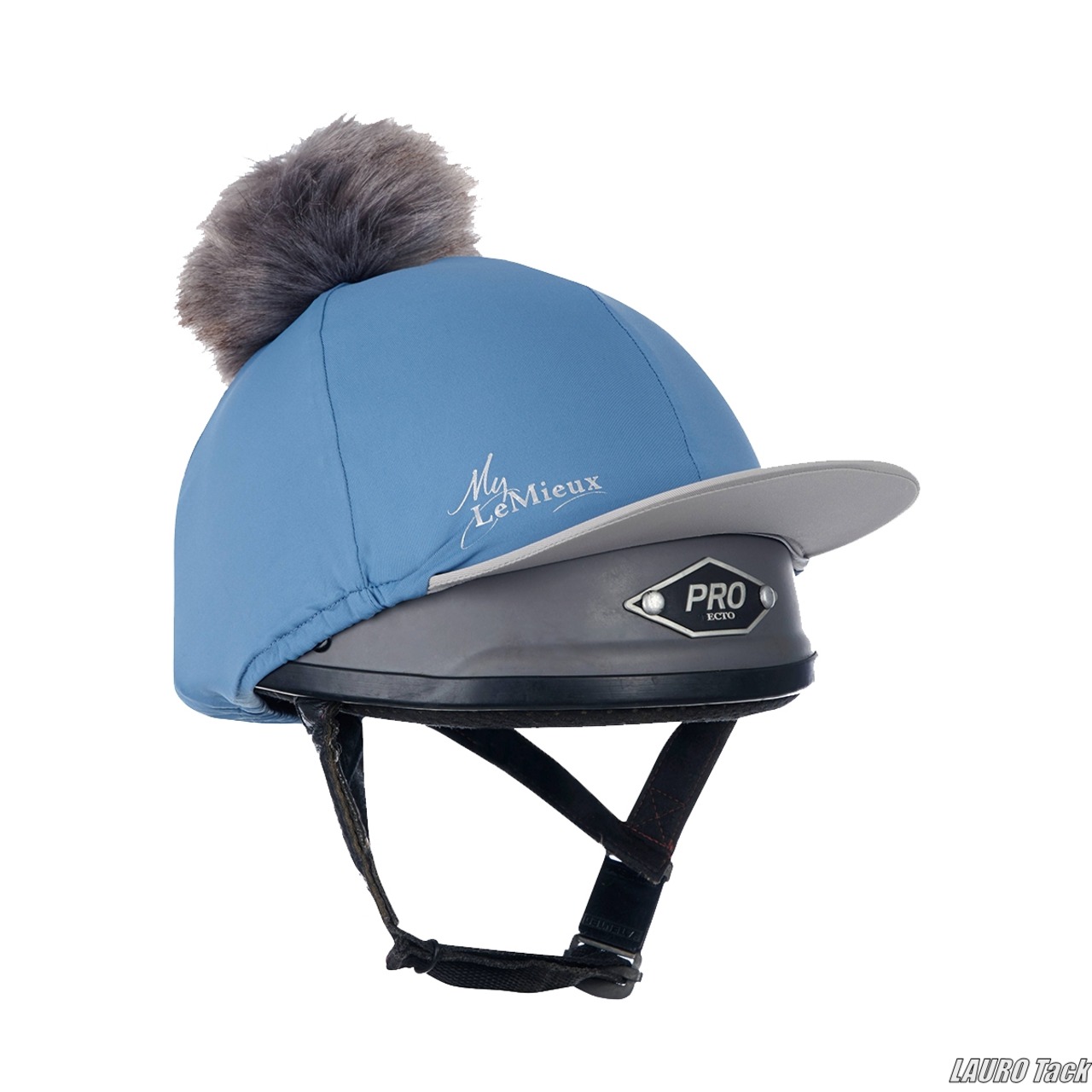 エレガントなブルーグレーのLeMieuxキャップカバー。伸縮性のある4WAYストレッチ素材を使用し、ヘルメットの形を選ばず装着できます。取り外し可能なポンポン付きで、気分に合わせた使い分けも可能。汚れ防止に優れ、同ブランドのゼッケンやウェアとカラーを揃えられます。