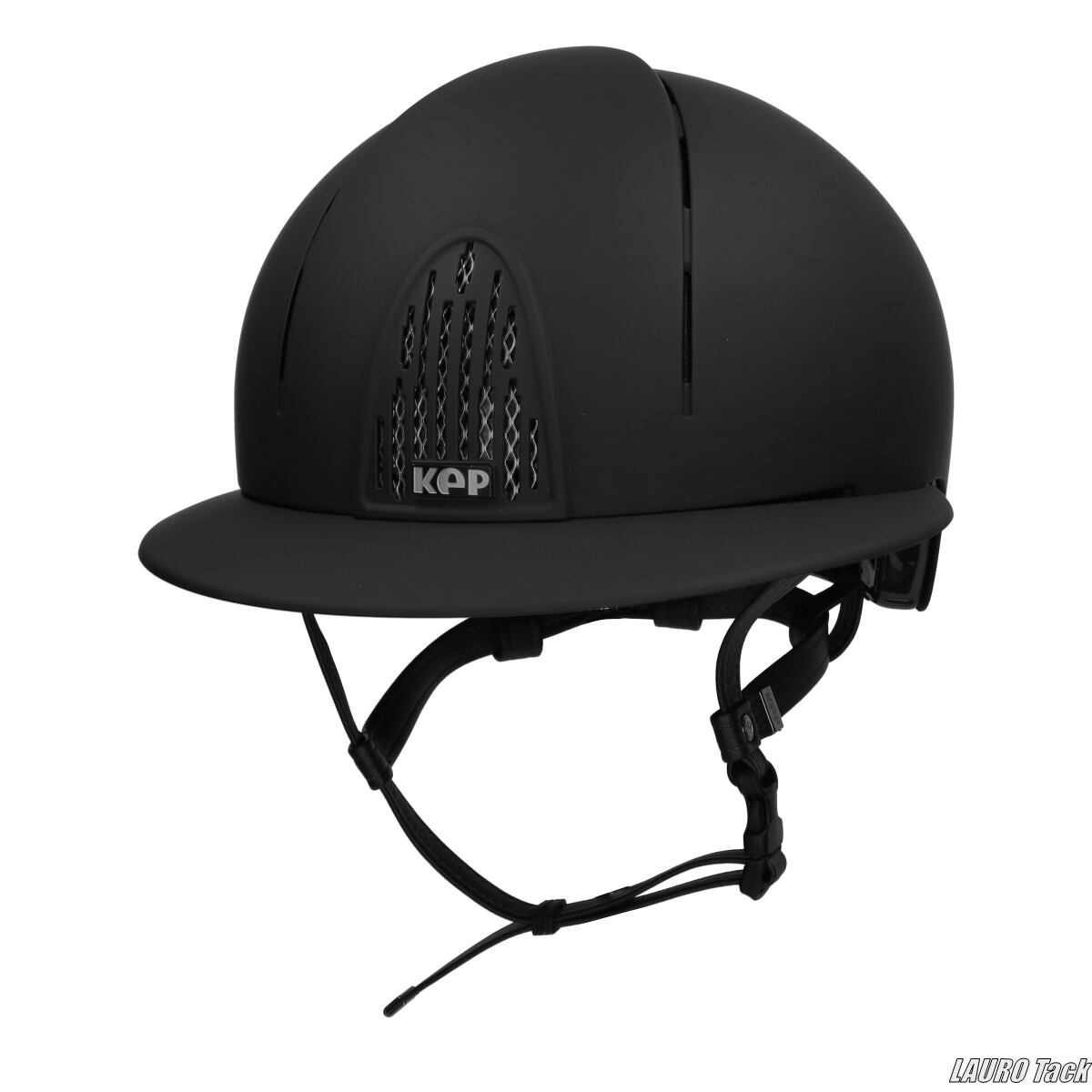 シックなブラック仕上げにポロバイザーを備えたKEP ItaliaのSmartモデル。VG1安全規格を満たし、軽量で快適な設計。通気性のあるベンチレーション構造と5点式チンストラップを装備。取り外して洗えるCoolmaxインナーが清潔さと快適さを維持します。専用バッグ付き。