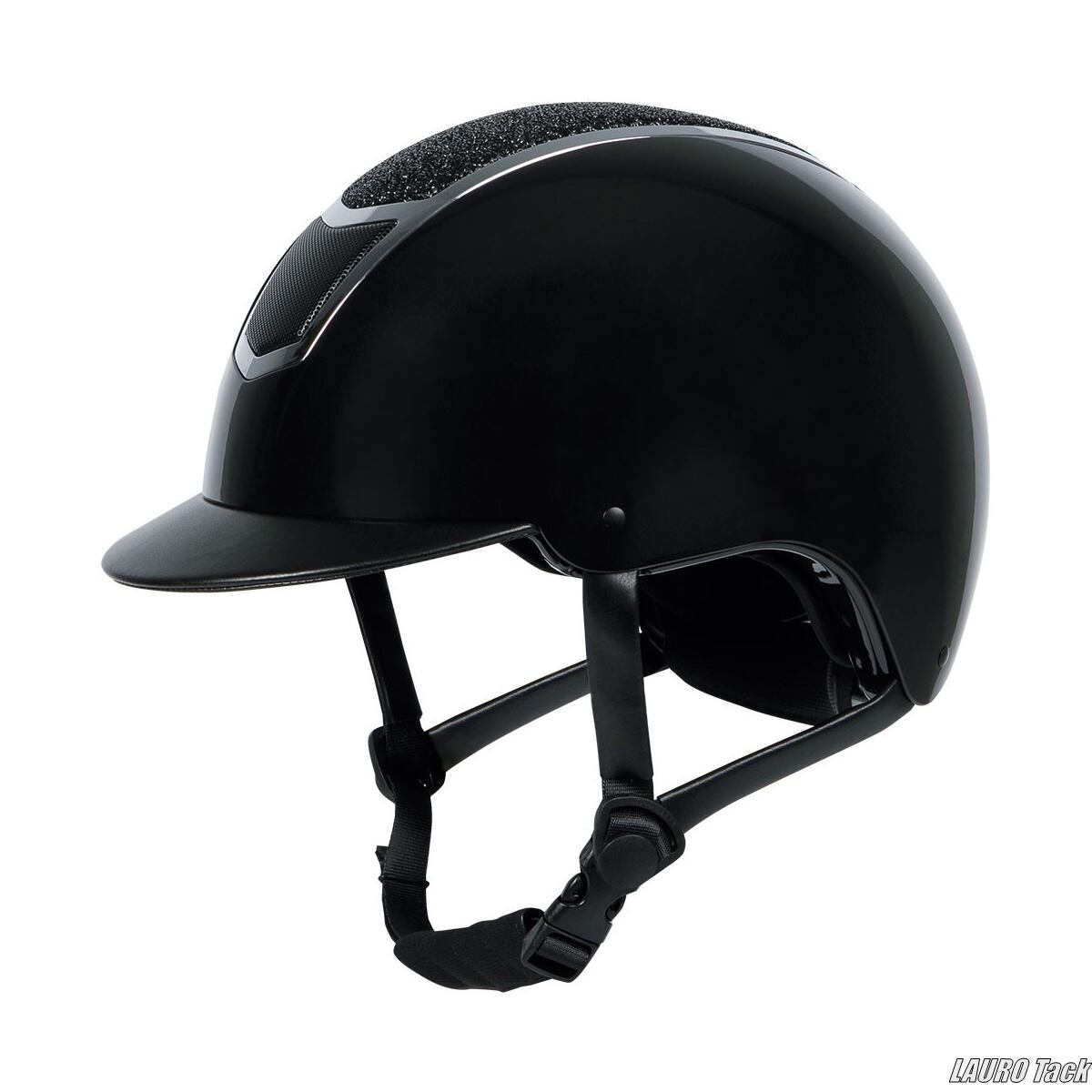 光沢ある外装にシルバースパークルとクリスタルをあしらった華やかなセーフティーヘルメット。VG1規格に準拠し、複数の通気スリットで快適さを確保。取り外して洗えるインナーで清潔に保ち、後部のダイヤルでサイズ調整が可能です。